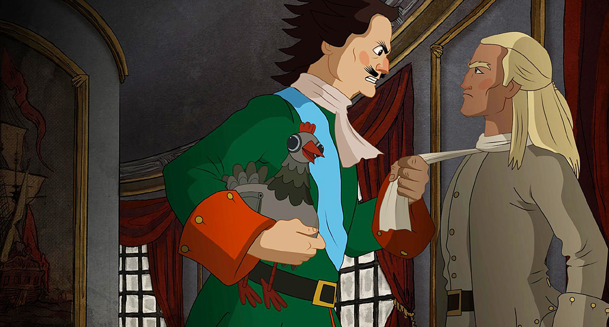 Взяв за основу низкобюджетный познавательный сериал, Сергей Серегин графику доработал. Получилось необычно: то неповторимое изящество простоты, когда сознание не сразу цепляет детали. И одновременно каждый герой с самого начала уникален. (А уж как вышел Пётр Первый – вообще неповторимо. У нас его обычно принято изображать как оживший памятник, великий и могучий – а тут император вышел совсем ни на что не похожий, живой, простой, но и одновременно царственный). А ещё, несмотря на то, что главные герои – мальчик Петя и девочка Маргарита, обязательной нынче любви в этой истории-то и нет. Им примерно лет по тринадцать, потому они просто дружат. Или просто ссорятся. Именно как подростки – и не стоит тащить к ним нашу взрослую жизнь, рано. А ещё, подозреваю, критикам не понравились антагонисты. Они не мир хотят поработить (и так далее по голливудскому обязательному списку), лишь мечтают удовлетворить собственные желания и амбиции, при нужде ради этого мгновенно предав сообщника. А что их желания выйдут боком остальному миру, злодеям наплевать.