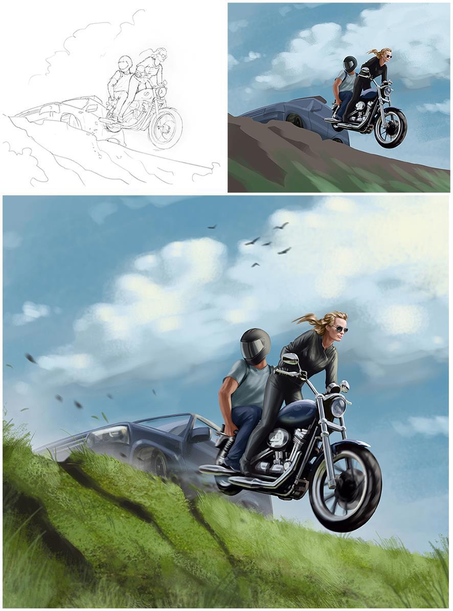 А пока хронология создания очень динамичной (надеюсь она динамичная) иллюстрации к сцене погони:
