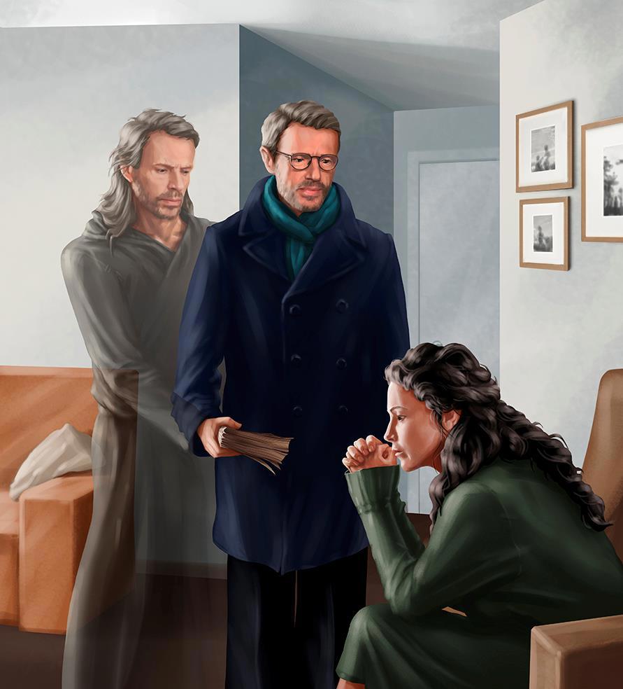 [Начало сцены глазами Бена. Он пришел к себе домой (мальчик Том - его сын, живет с ним) и застал там Катрину и Жана Бодена. Боден попал туда случайно, зашел попрощаться, перед отлетом в Париж. А Катрина пришла устроить разборки]
