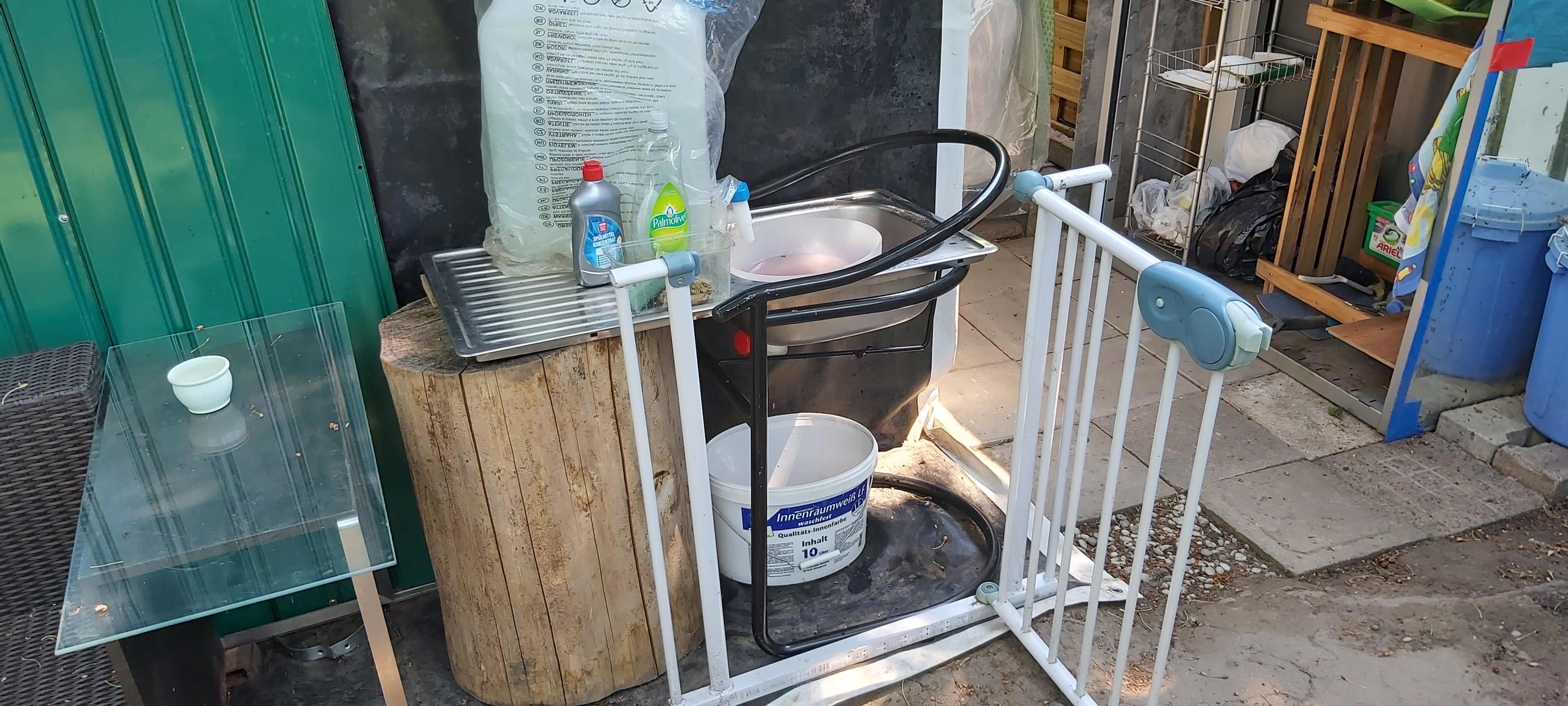 Притащила стол, и раковину Стол пока поставила на веранду.![]() | Ага, потом ещё притаранила - типа полка, и … Нашла куда поставить.![]() | Мойка, меняла позиции несколько раз. 1 2 Внимание 3 Кресло разобрала и... 4 Убрала гриль, и теперь мойка на его месте, надеюсь, что постоянное.![]() |
