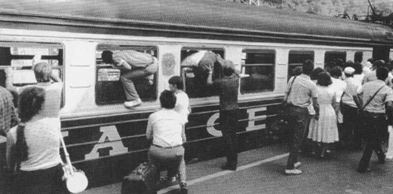 Для тех, кто помнит СССР. Было у нас такое время, когда мы все ездили в Москву за продуктами, нет, конечно, не за всеми, а например, за хорошей колбасой. В то время как Вы сами понимаете, не было машин в таком количестве, и все дружною толпой ездили на электричках. Толпы, которые собирались перед электричкой, это было что то нечто!!! Естественно были и хитрости, которые использовались для того, чтобы занять места в электричке. Вот одной из таких хитростей была такая. Когда электричка подходила к пирону, народ умудрялся закинуть в открытое окно либо сумку, либо нырял сам, либо подсаживали детей, которые размещались на лавках. Один раз и я участвовал в такой авантюре, правда я был чем то вроде сумки, то есть лет мне было совсем мало.