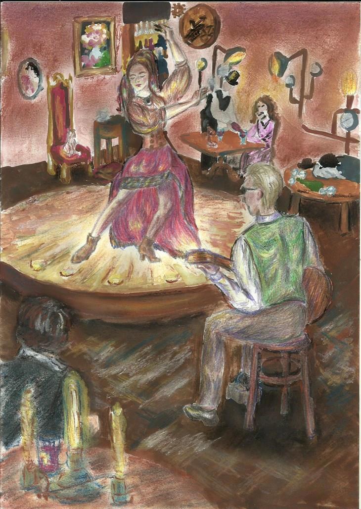 И еще одна Мия для Арт-прорыва от Екатерины Британ. Без скрипки, но уже поймавшая свою волну. А мрачная девица в углу в моем видении - Эльстер, которая превентивно ревнует красивого гитариста))