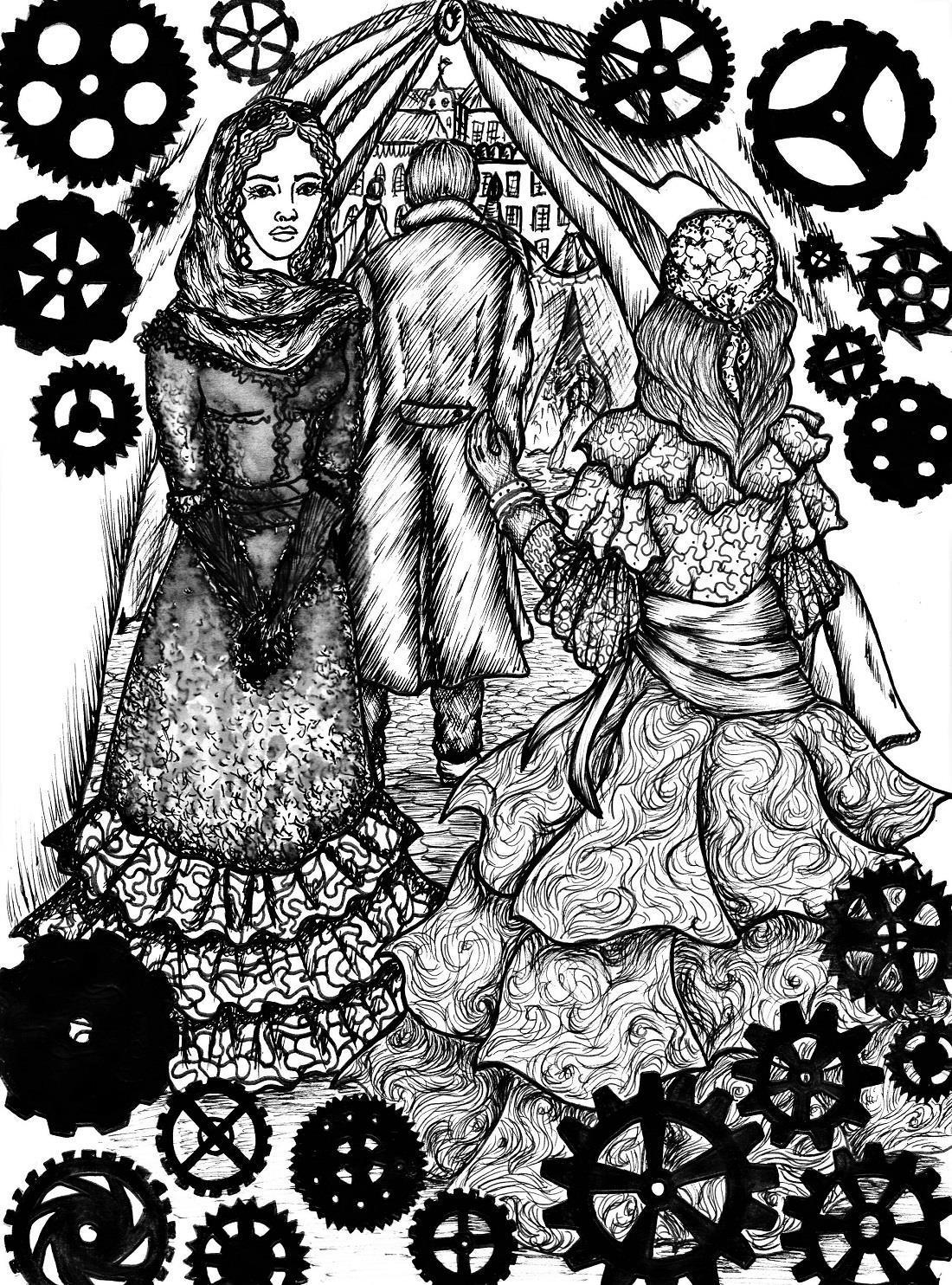 Сюрреалистичная и символическая картинка от Елены Шилиной. Тут есть шестеренки, маячок, рельсы и птичье перышко (может и механическое). И много скрытых смыслов. И достаточно ящитаю))