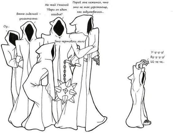 Это был не единственный раз в той ролевой, когда выражения лиц у светлых и у темных были примерно одинаковые. Оправившись от потрясения, все светлые начали расцеплять клубок из хоббитов и Смеагола. Ну, мы, естественно, уже не могли сослаться ни на лень, ни на солидность.