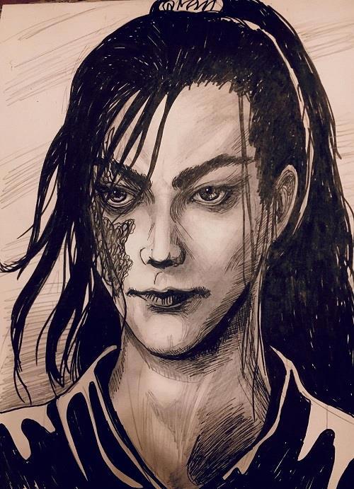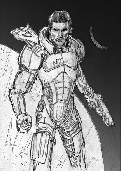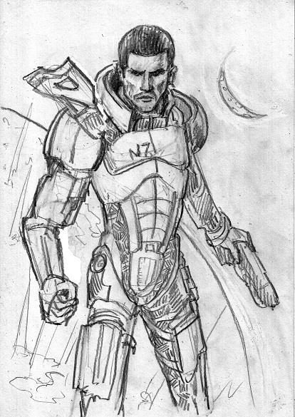 Картиночка эта была к рассказу-фанфику на Масс Эффект. И поскольку я в эту игру не играла, а товарищ автор по примеру многих фикрайтеров не озаботился прописать внешность героев а зачем, их же и так все знают! , то... было сложно