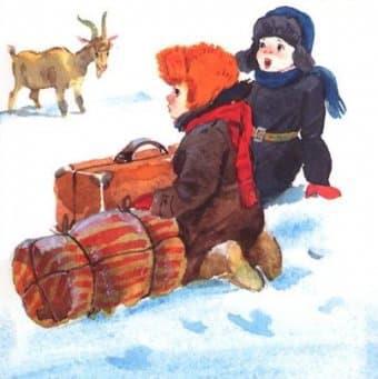 Куда направляются Чук и Гек? В Сибирь. И сцена «прибытия в Сибирь» красноречива более чем полностью. Страшный сон москвича о России – «неподалеку появился страшенный козел. Сначала он глодал кору с замороженного бревна, но потом противно мемекнул и что-то очень пристально стал на Чука с Геком поглядывать. Тогда Чук и Гек поспешно укрылись за чемоданами, потому что кто его знает, что в этих краях козлам надо».