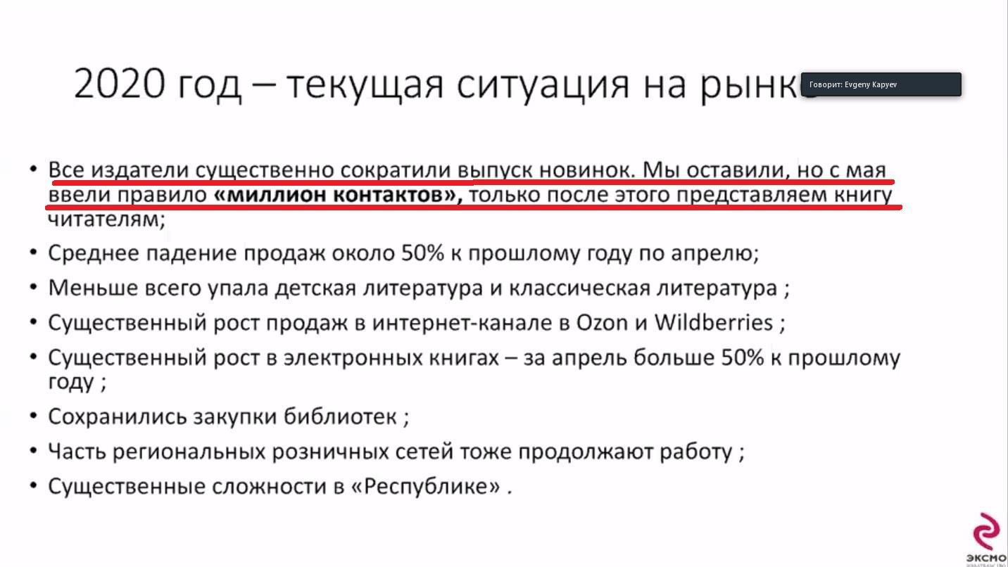 Автор: Алексей ВязовскийИз сегодняшнего выступления директора Эксмо на писательской онлайн-конференции: