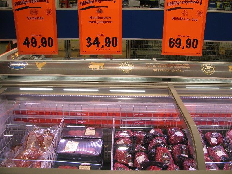 Вот так шведы относятся к правилам, и не переписывают даты годности на упаковках. А сколь денег выбрасывается на свалку и откорм мясных пород животных? Качество мяса превышает даже самые радужные наши ожидания. Оно всегда свежее, а не каменно-мороженое, уже упакованное и сертифицированное.