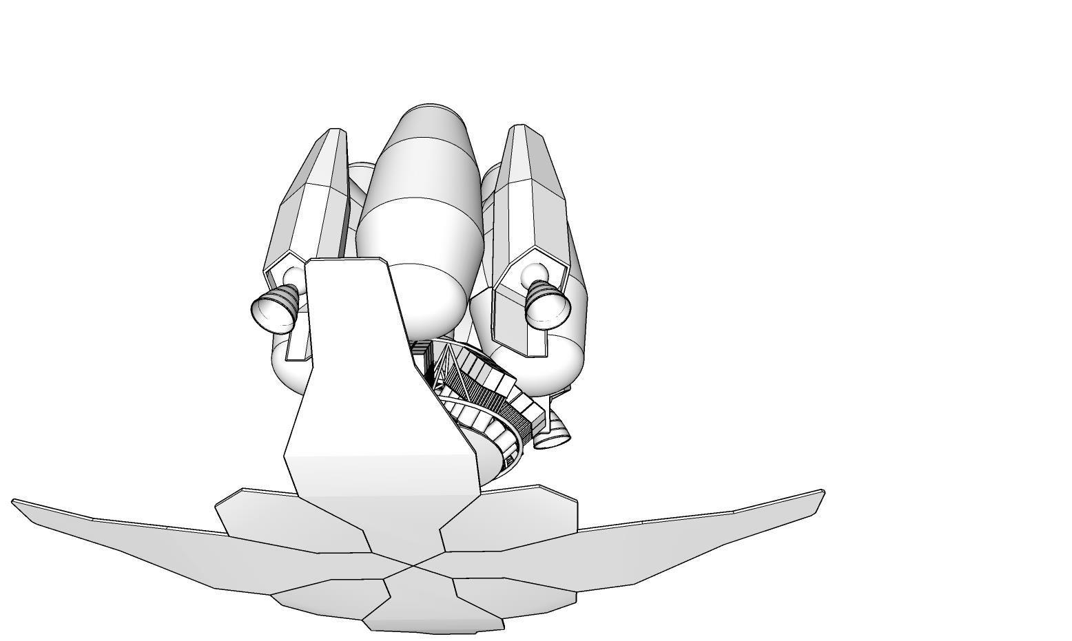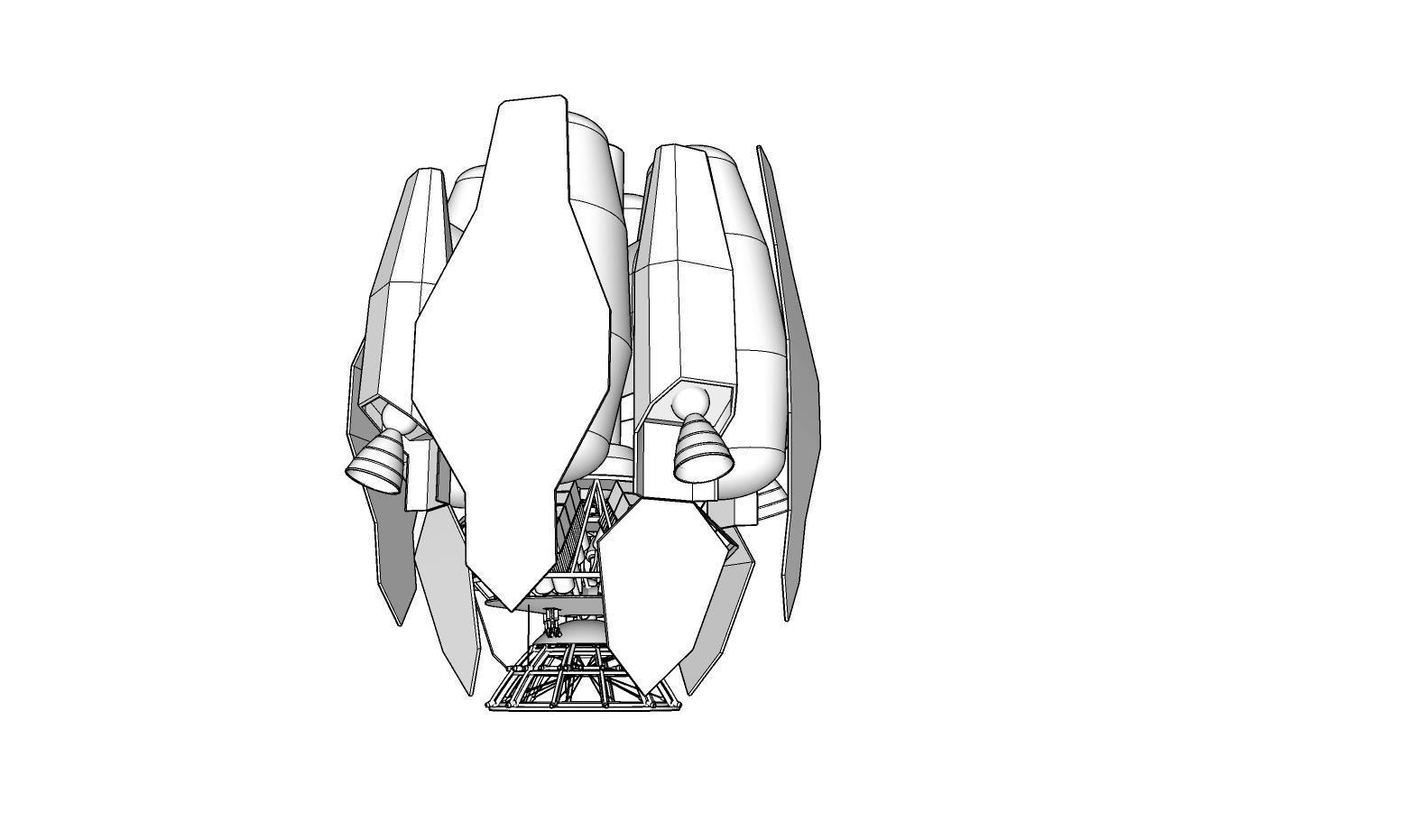 Двигатель представлен в крейсерском режиме и режиме посадки, с развёрнутым тепловым экраном, выполняющим и функцию посадочных опор. Наброски настолько понравились, что тепловому щиту нашлось важное место в сюжете. Безумно рад тому, как мой роман вдохновил читателя на визуализацию кораблей. Именно в такие моменты лишний раз убеждаюсь: пишу не зря. Спасибо, SquallTemnov, очень приятно!