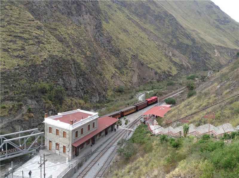 А это вид на сам вокзал, сделанный с обзорной площадки музея Железных дорог. Второй такой музей находится на горе Монте Кристи в 30 минутах езды от моего дома. Эти две точки планировалось связать железной дорогой через торговую столицу Гуаякиль, но... не сложилось.