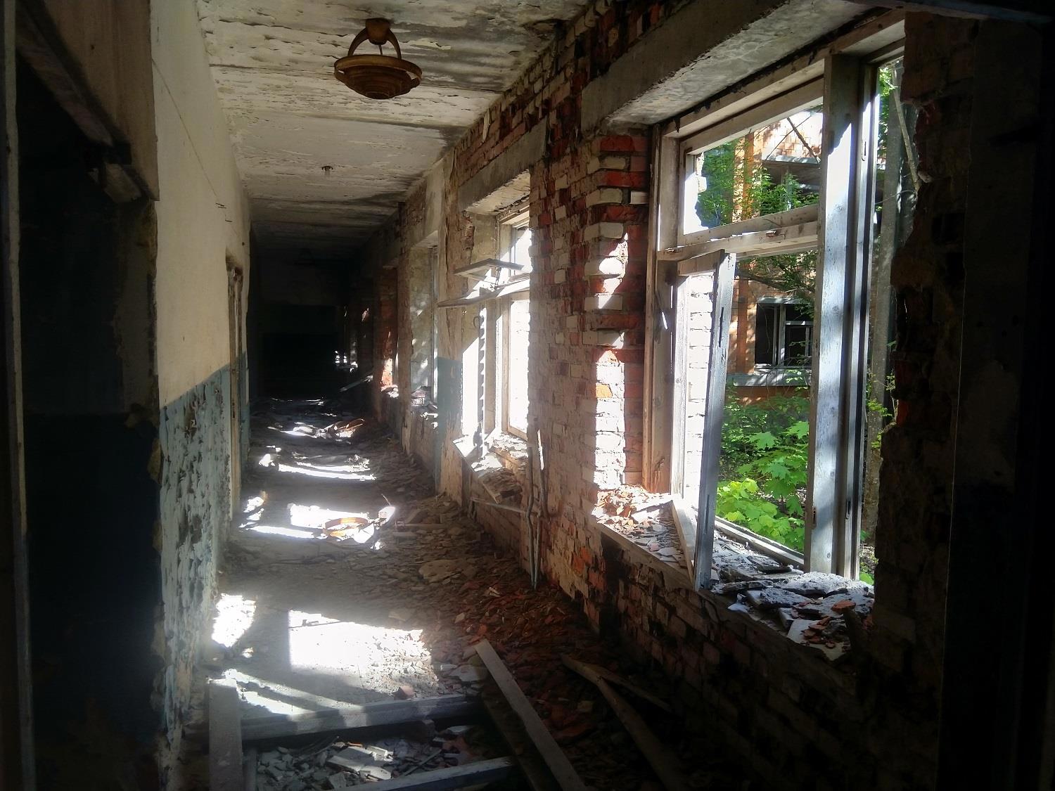 Мне очень понравился формат экскурсии. Выглядел он так: нас завозят в интересное место, выпускают из машины, и говорят, сколько времени нам можно бродить. Рекомендуют не заглядывать в определённые места (слишком ветхие дома или подвал, который дышит на ладан) и предоставляют полную свободу действий. Если какой-то вопрос возникает (что за здание, когда построено и т.д) – Петя отвечает очень подробно и с большой охотой. Но в процесс изучения зоны не вмешивается. Никаких «посмотрите налево, там ржавый велосипедик, посмотрите направо, там какахи зубров, далеко не отходите, а то не услышите ничего интересного».