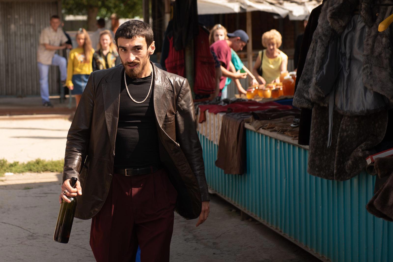 И это не говоря о крупном плане, открывающем каждую серию, где в самой обычной панельке 93-го года ярко белеют пластиковые окна. А учитывая не совсем определившийся жанр сериала, то пытающегося казаться комедией, то ломающего драму, еще больше портит атмосферу отсутствие самых настоящих маркеров времени. Именно так, от вездесущего Лёни Голубкова по телику, меняющего всемирную историю банка Империал и до тех самых ларьков, закрытых решетками, тяжелых, железных, переливающихся за стеклами россыпью водочных бутылок, обертками дерьмовых батончиков, жвачками, сигаретами и пивными банками. Нет бабулек с семками, нет шляющихся адептов непонятных сект, где самыми безобидными были Свидетели Иеговы и прочие мормоны, нет залипающих нарков, а младшая сестренка героя не залипает перед экраном, глядя на дядю Сережу Супонева и «Джунгли зовут!», нет… Все просто – там нет именно девяностых. В этом сериале есть как-бы девяностые, вроде показанных в «Быке», где мелодия а-ля «Комбинация» и тренажерка подпольного типа почему-то совместилась с нарком-скином Дугласом и местной гопотой, выглядящей как самое начало лихих-святых, но почему-то рубящихся в ушатанном ДК под самый настоящий «ой».