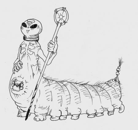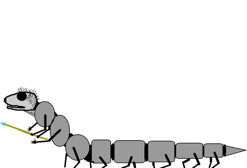 Тело - 9 сегментов, 12 ног, 4 руки. "волосы"- это проводящие структуры на основе углерода, антенны для "теневого чувства".