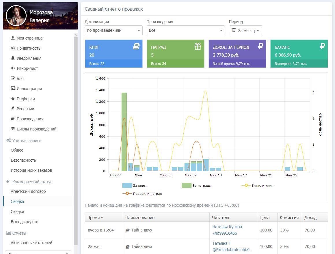 Вон тот подскок около 9 мая из-за того, что пост с моей книгой вышел в группе ВК (бесплатной группой АТ женский взгляд)