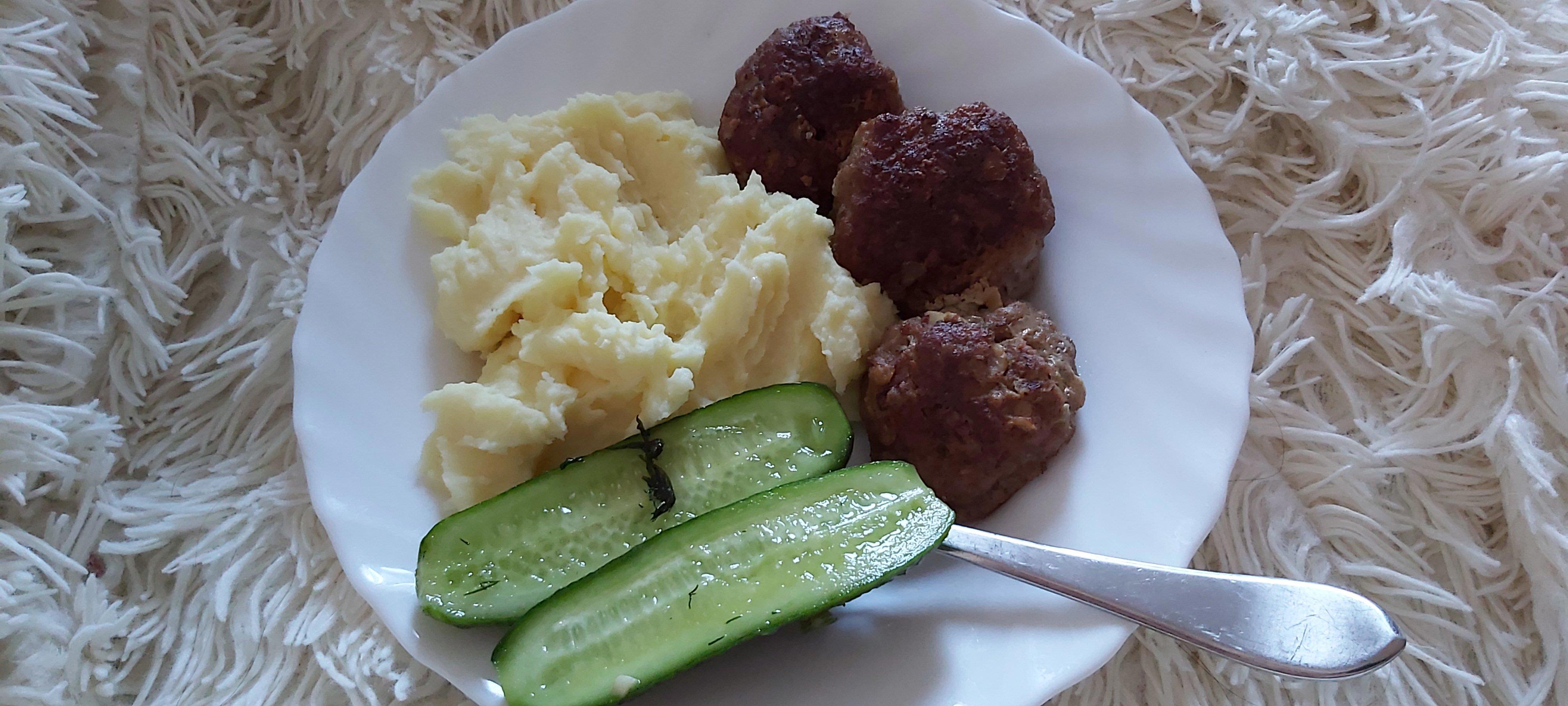 Вечером на ужин были котлетки и собственно изготовления малосольные огурчики.