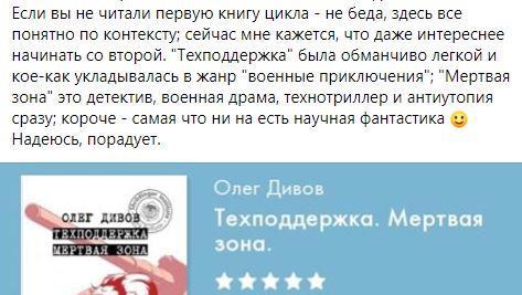 Олега Дивова знают абсолютно все любители отечественной фантастики — и как автора, и как участника практически любой межавторской движухи начиная с девяностых годов прошлого века, как едкого и бескомпромиссного критика, как организатора межавторских фантастических сборников — и так далее, далее и далее. Пока на АТ Олег выложил только свою самую свежую книгу — вторую в серии "Техподдержка". Судя вот по этому комментарию
