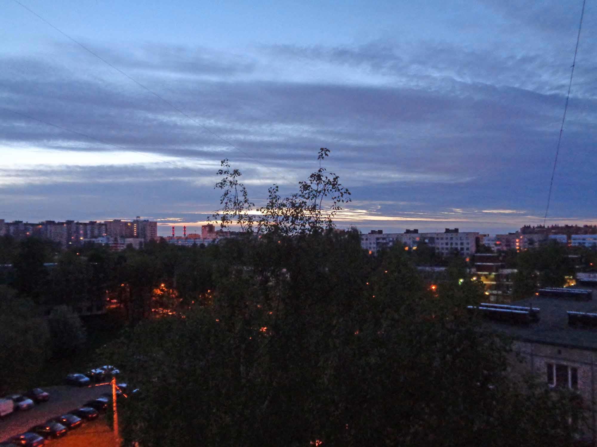 Неотвратимое приближение Белых ночей в Питере показалось мне достойным запечатления. Снимки сделаны между 3:00 и 3:05 по Московскому времени. Фотоаппарат сказал: "Зачем меня разбудили? Всё равно буду выдавать зернь!" - но с условиями освещения справился.