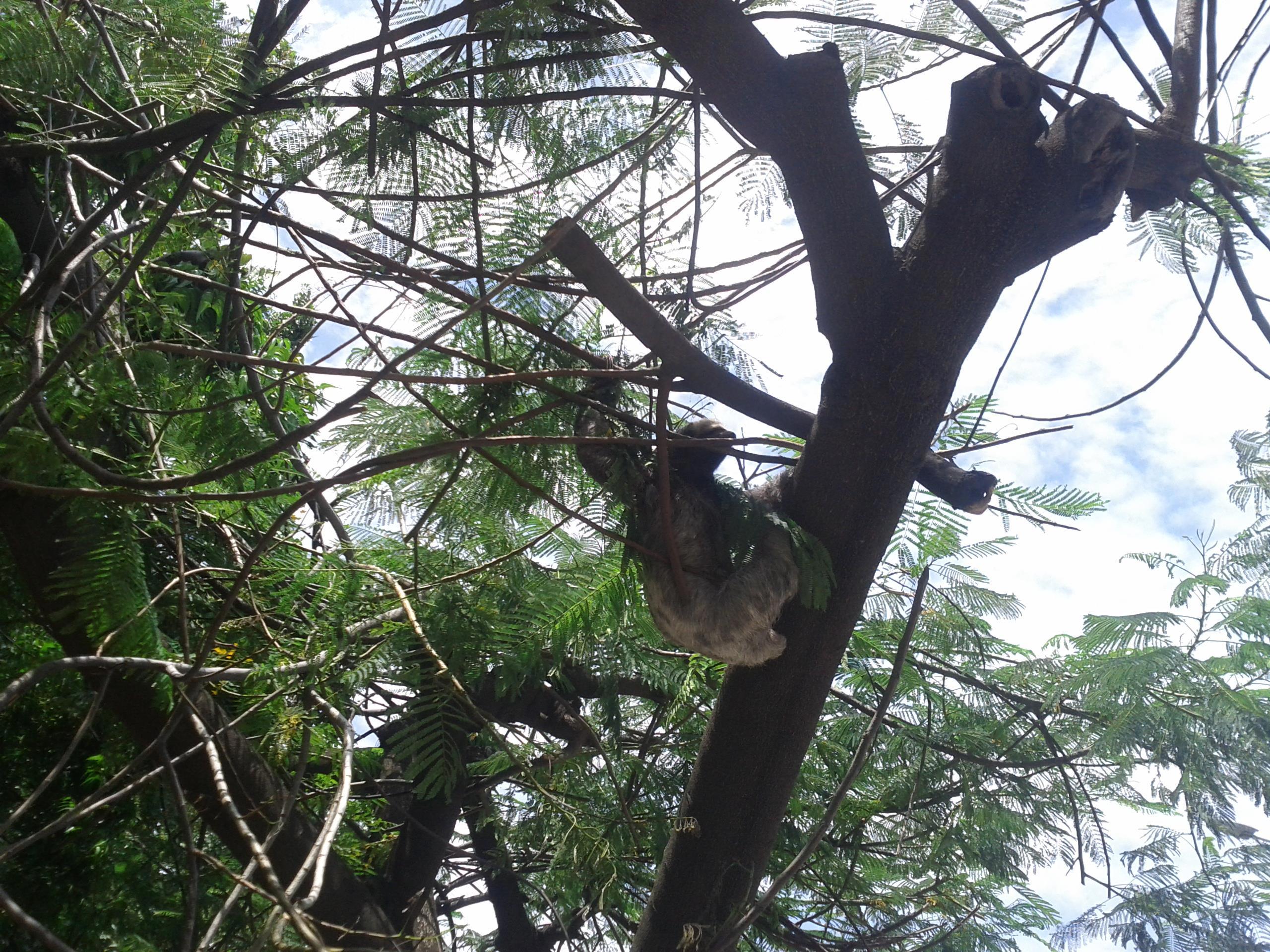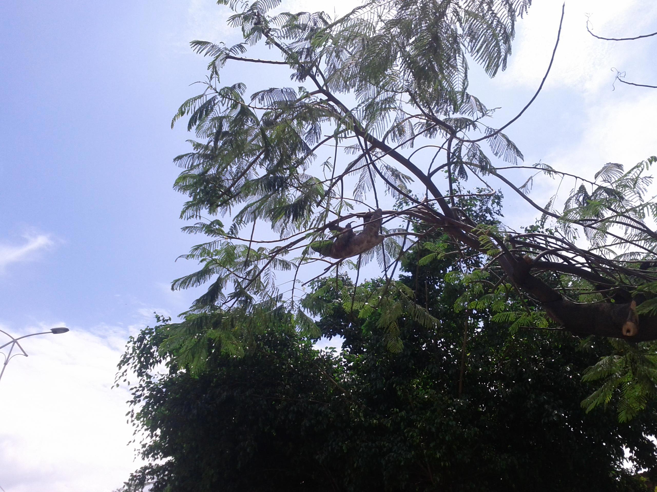 Это чудо-юдо - ленивец. И он просто живет в городском парке, иногда швыряясь ветками в кого бог пошлет. :) Собственно, так его и получилось заснять.