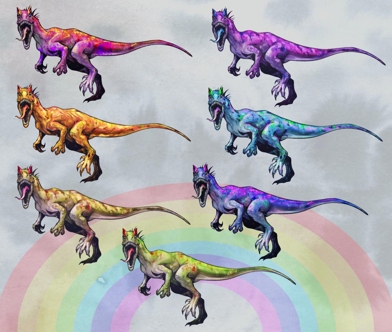 Автор: LennigenНедавно сделала стикеры с аллозаврами всех цветов радуги.