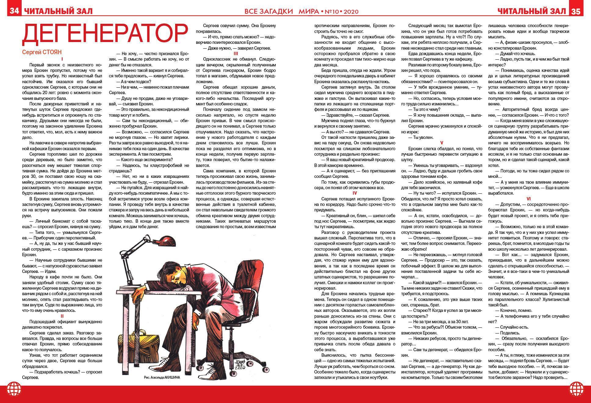 Автор: Стоян Сергей НиколаевичВ журнале «Все загадки мира» №10, 2020 опубликован мой рассказ «Дегенератор».