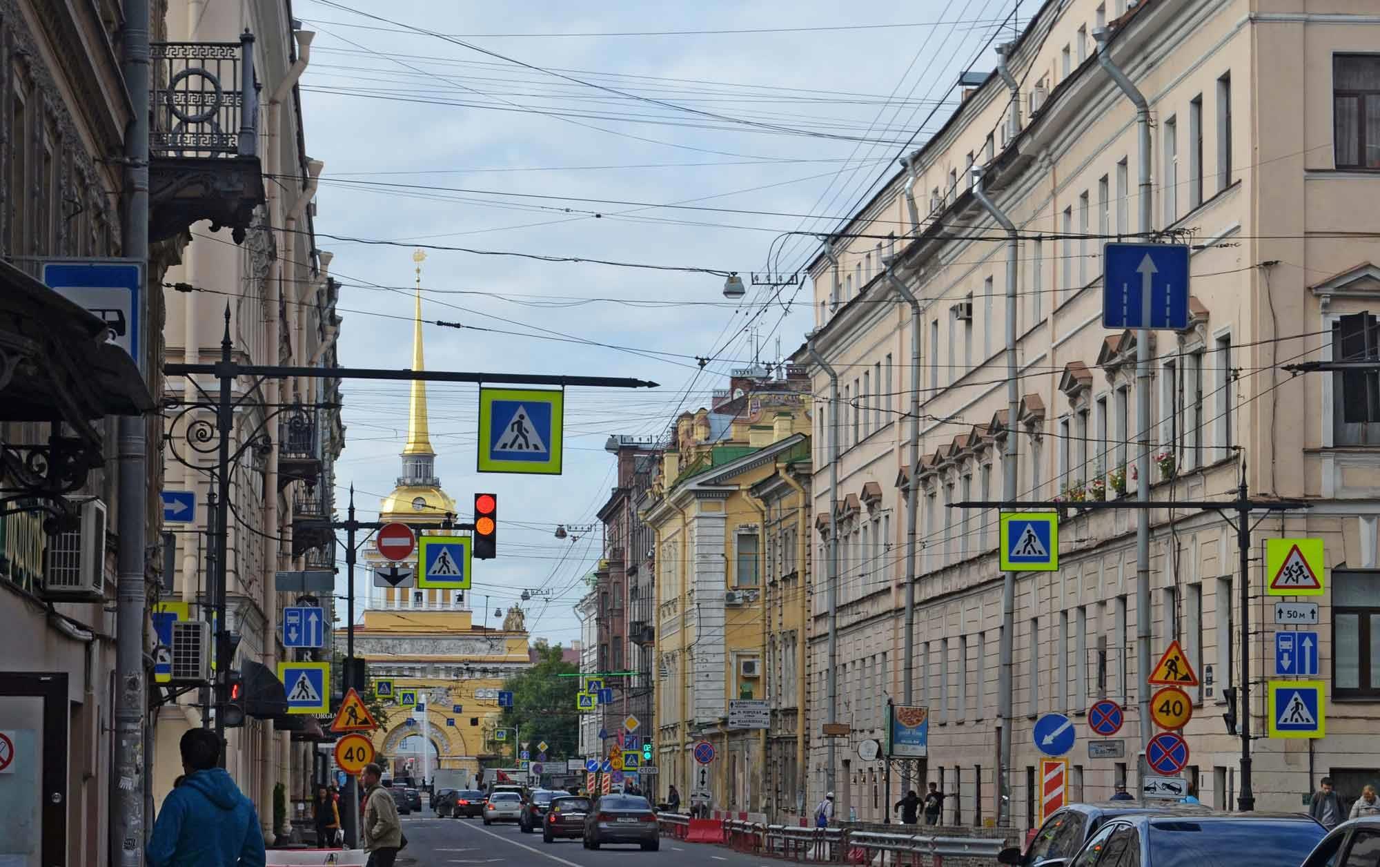 К сожалению, ночных кадров с улицей Гороховой у меня нет, но в темноте описываемый эффект с некоторых ракурсов можно наблюдать: