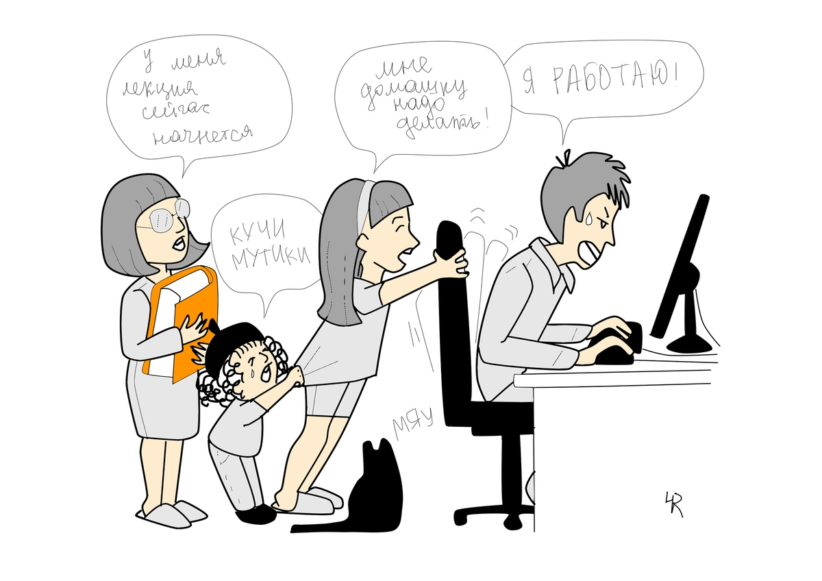 Автор: Влада ДятловаМы постепенно выходим из карантина – щуримся на белый свет. Страсти уже немного уляглись. И можно посмотреть на все с юмором. Хотя, наверное, без юмора это просто невозможно пережить, когда ты оказываешься заперт в четырех стенах, которые внезапно превратились одновременно в школьный кабинет, офис, аудиторию универа. Собака стала пугливой и нервной, звяканье карабина поводка наводило на нее тоску – столько гулять она не хотела. Из двух компьютеров, один пал смертью храбрых в боях за удаленку, и ситуация у меня стала примерно такой: