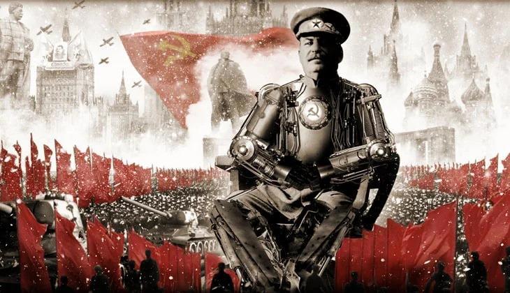 Кровища, жуть, стволы, танки, атомные бомбардировки, заклёпки, заклёпки, заклёпки. Возможно - чуть-чуть гротеска в стиле сталинпанк.