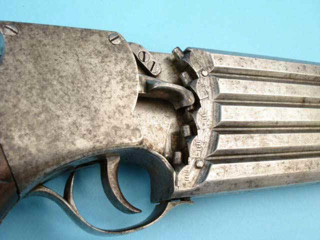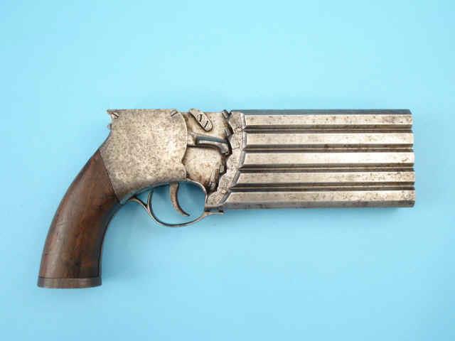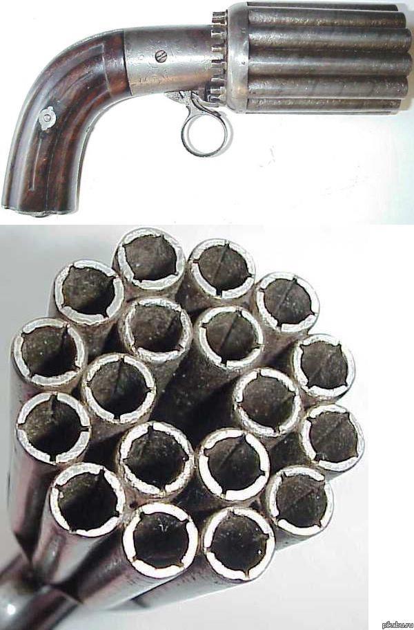 Многоствольная перечница (бундельревольвер). Гладкоствольная, в стволах не нарезы, а насечки под ключ для снятия стволов.