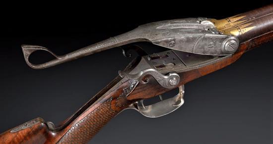 Вот так выглядит ранее оружие под патрон Лефоше в открытом виде. Механизм запирания ствола, предложенный Лефоше используется до сих пор почти без изменений во многих охотничьих ружьях.