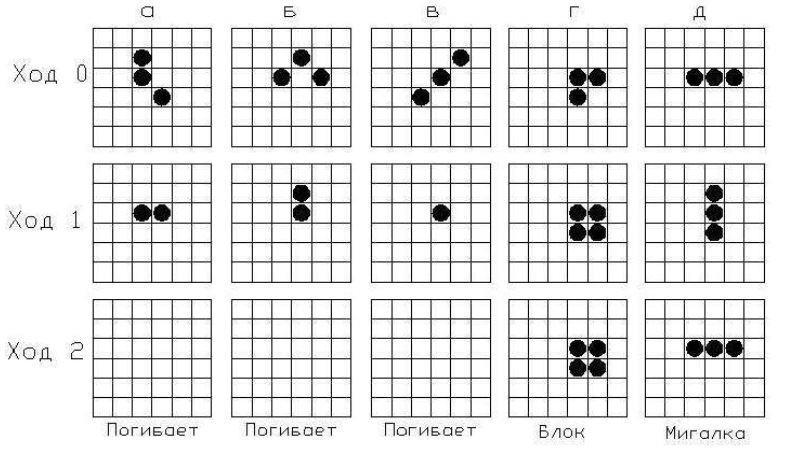— Математик Джон Конвей придумал эту игру в 1970 году. По сути, это набор предельно простых правил, благодаря которым без всякого компьютера, просто на доске с фишками, можно изучить общие принципы существования всего живого, потому что физические законы нашего универсума, едины и для простенькой модельки и для межзвездных империй.