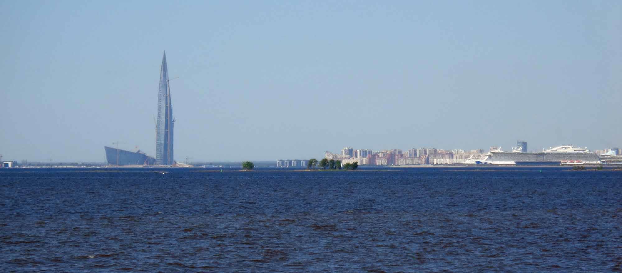 На следующем фото виден другой берег и Лахта-центр (мне он напоминает диковинный замок СНежной Королевы, этакую гигантскую сосульку):
