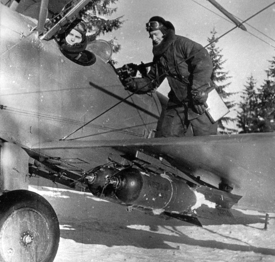 Вот так крепились крупные бомбы под крылом боевых У-2: