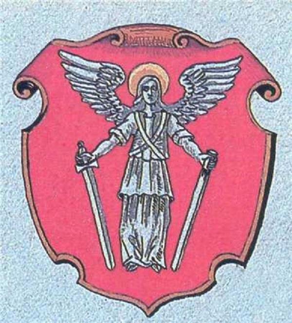 Впервые ангел с мечом появляется в 15 веке на гербе вошедшего в состав Польши Киевского воеводства. Меч и ножны у него опущены – это символ покорности.