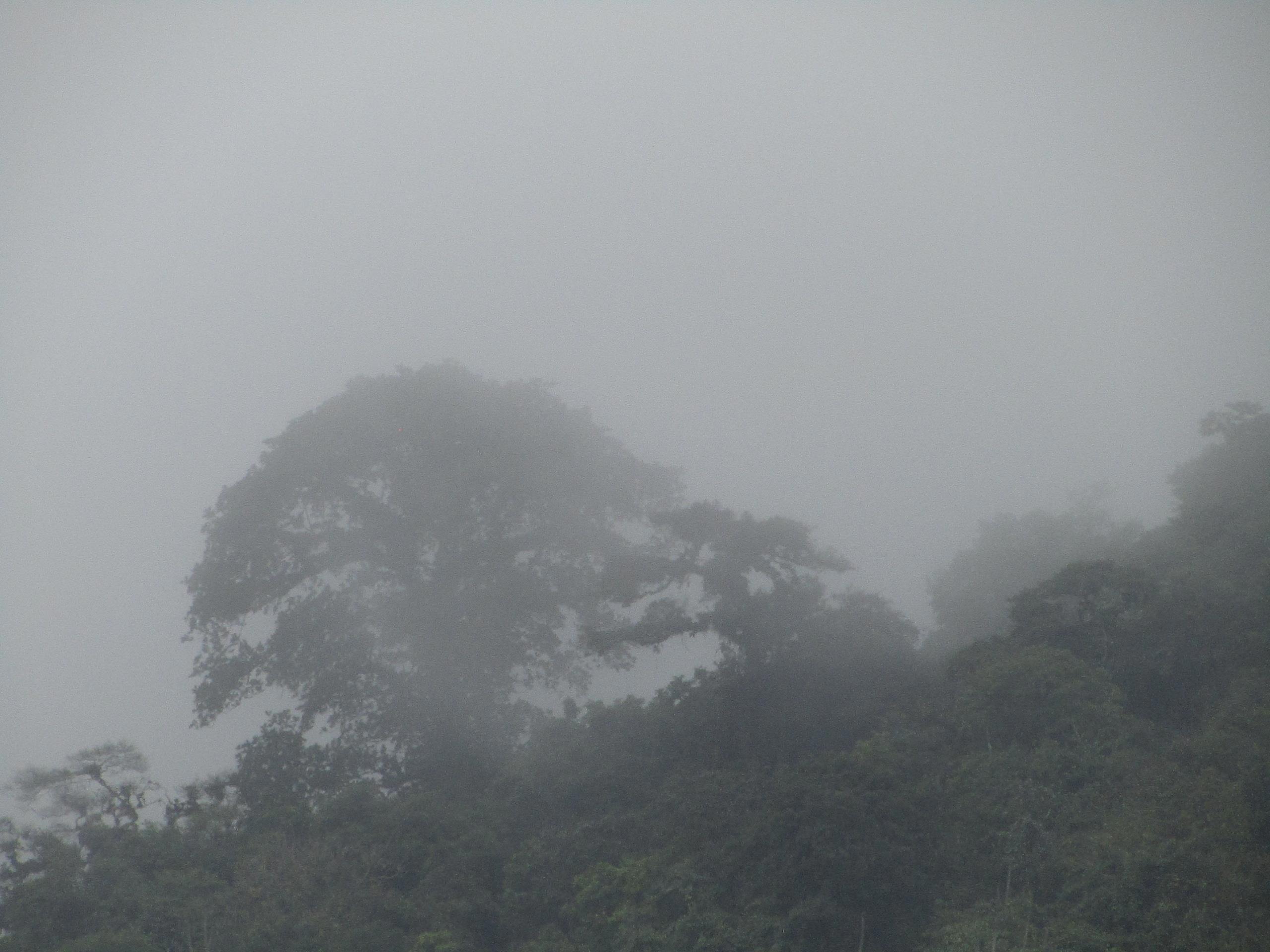 На самом деле просто облако примостилось на вершине горы. Ну и дерево зачетное, конечно. :)