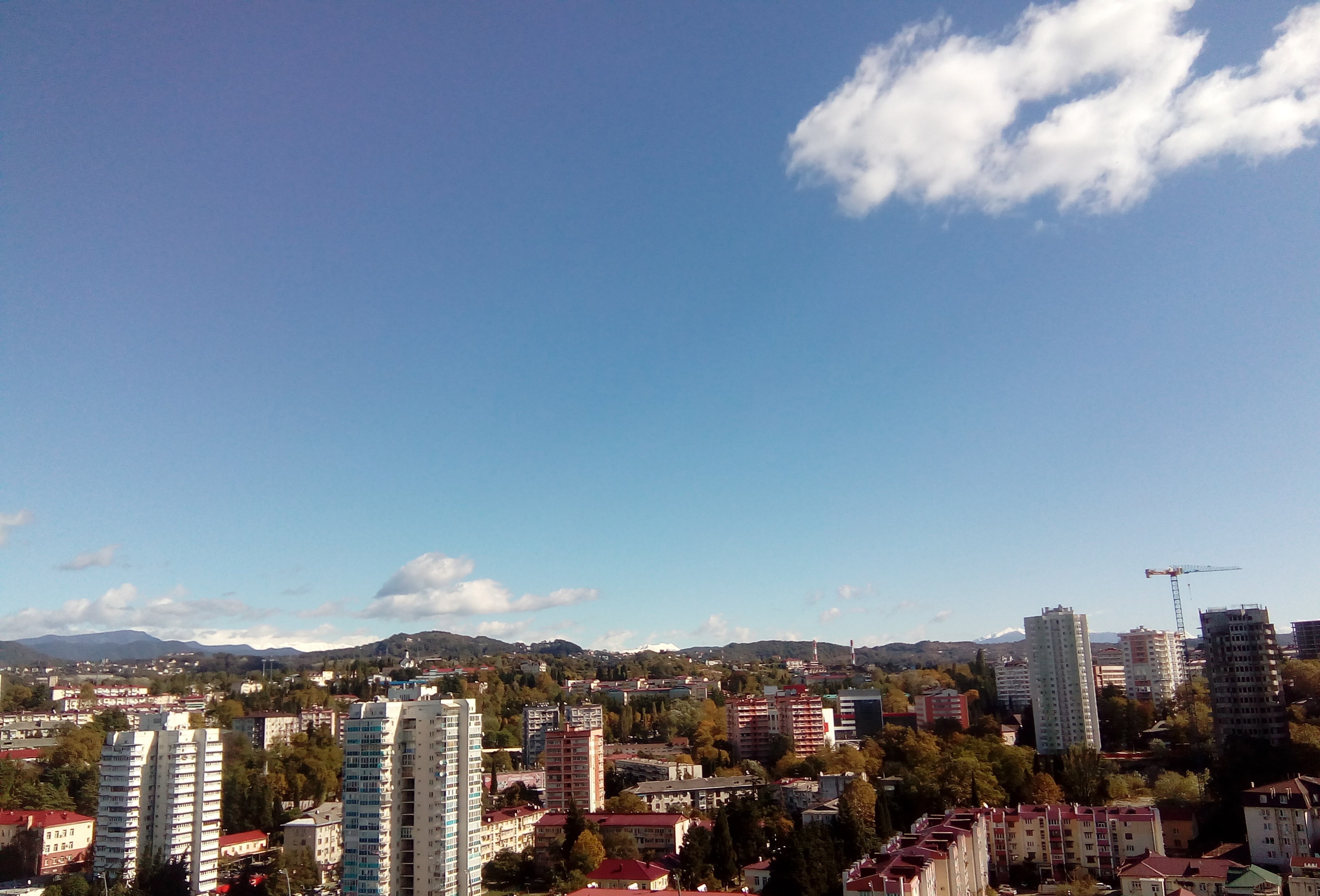 Сегодня настолько солнечная и безоблачная погода, что видны белые шапки гор =)