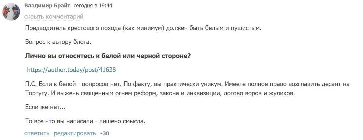 Александр Кронос в своем блоге https://author.today/post/91924 довольно резво взялся за дело, но не прошел тест https://author.today/post/41638 (может просто его не заметил и потому проигнорировал?)