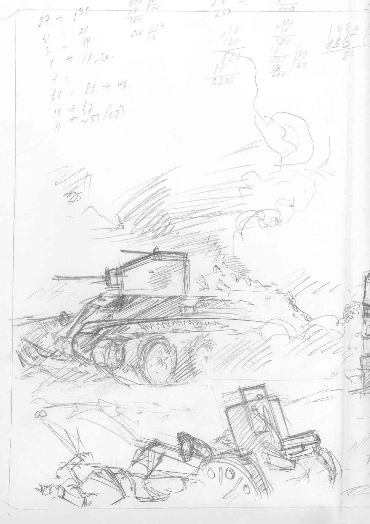 2. Мой первый подход к танчикам (Баин-Цаган). Тогда же была сделана серия рисунков с пленными японцами и атака японцев. Но нашел только это: