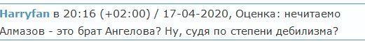 Это уже друг не мой)) а какого-то там Ангелова. Даже не буду проверять, кто это. Но выводы те же и ответ на вопрос "откуда вы знаете, что они не читали". Ну вот... интуиция подсказывает. А оценка тоже поставлена. И тоже высокая, да.