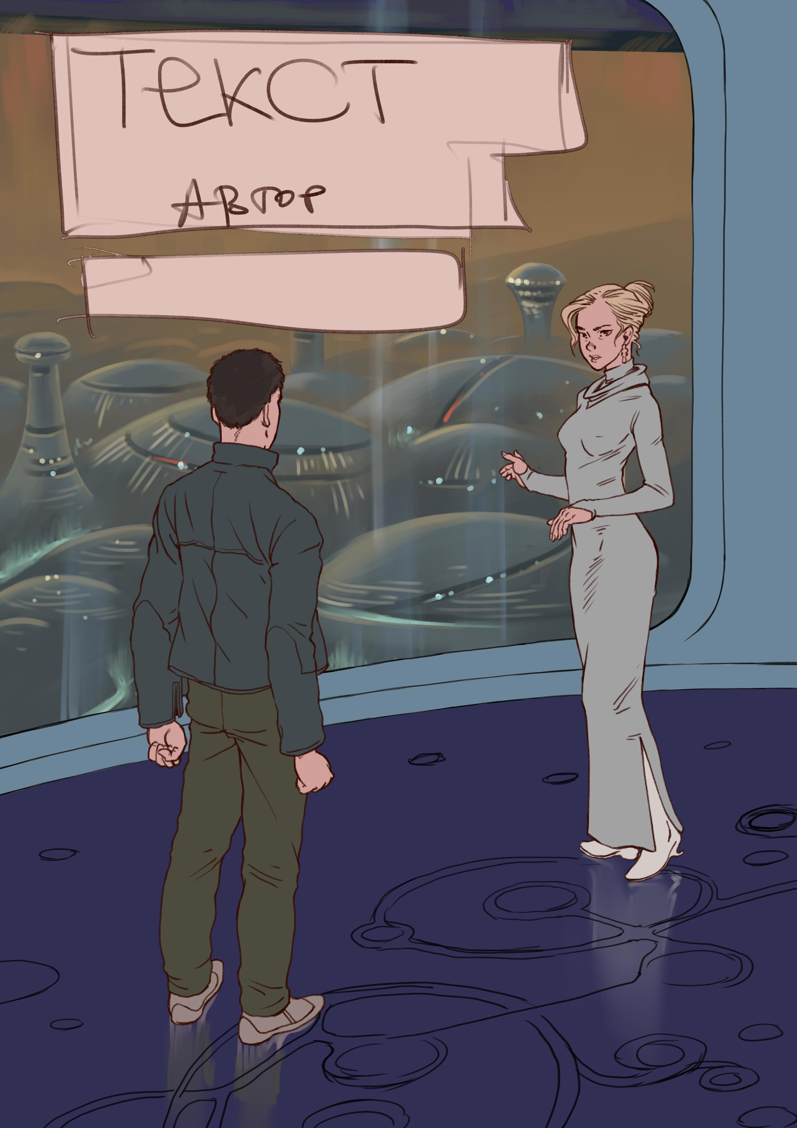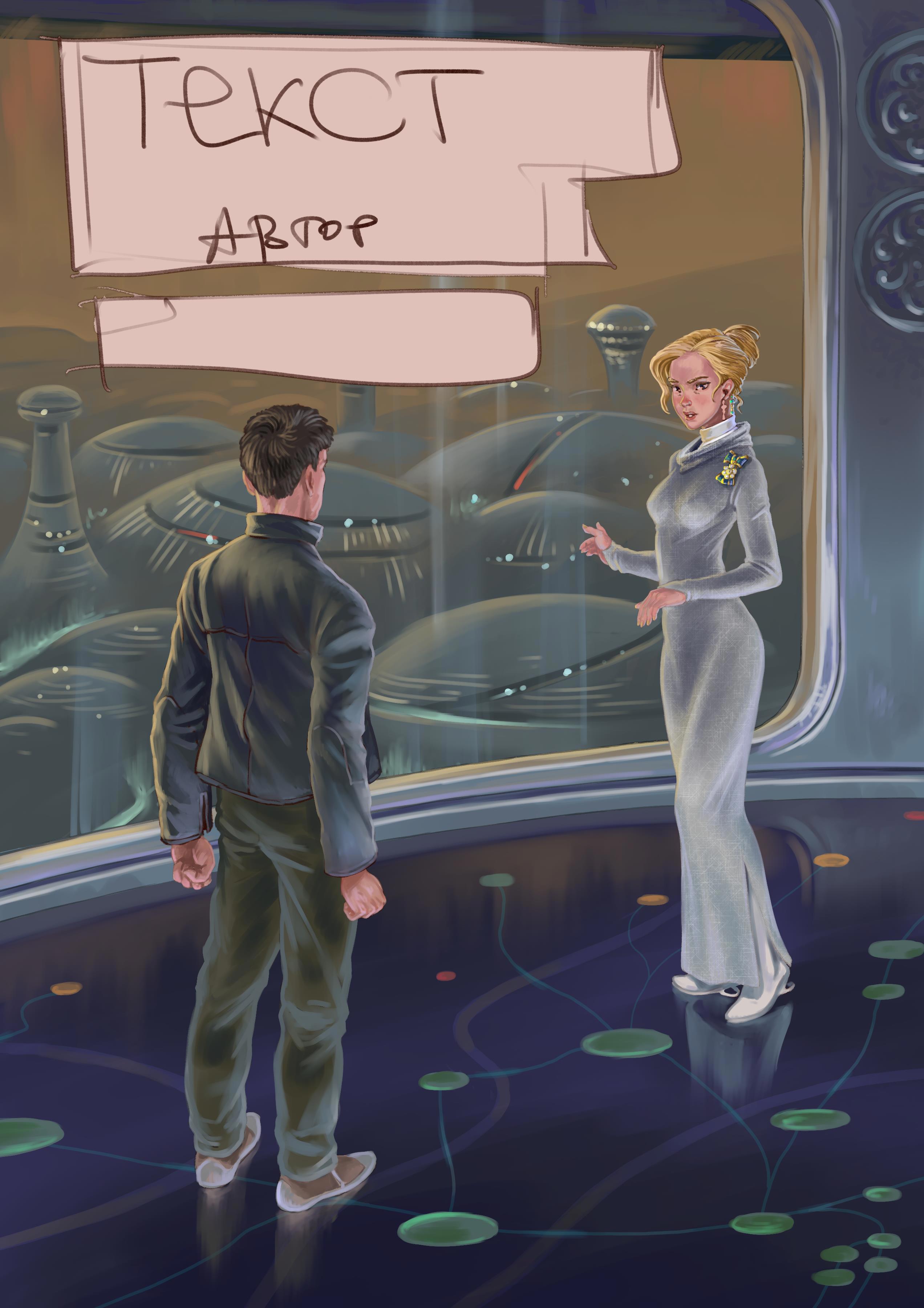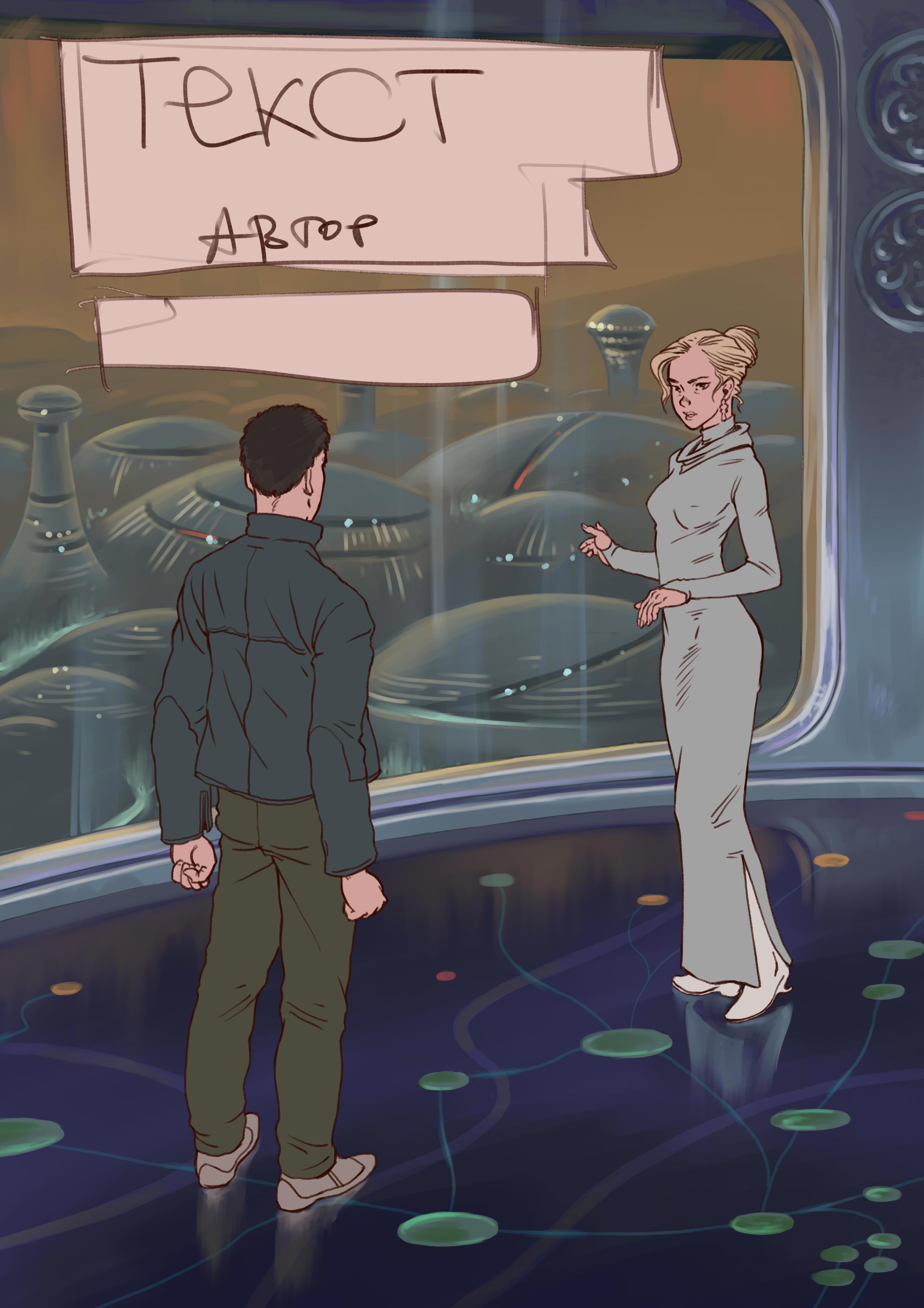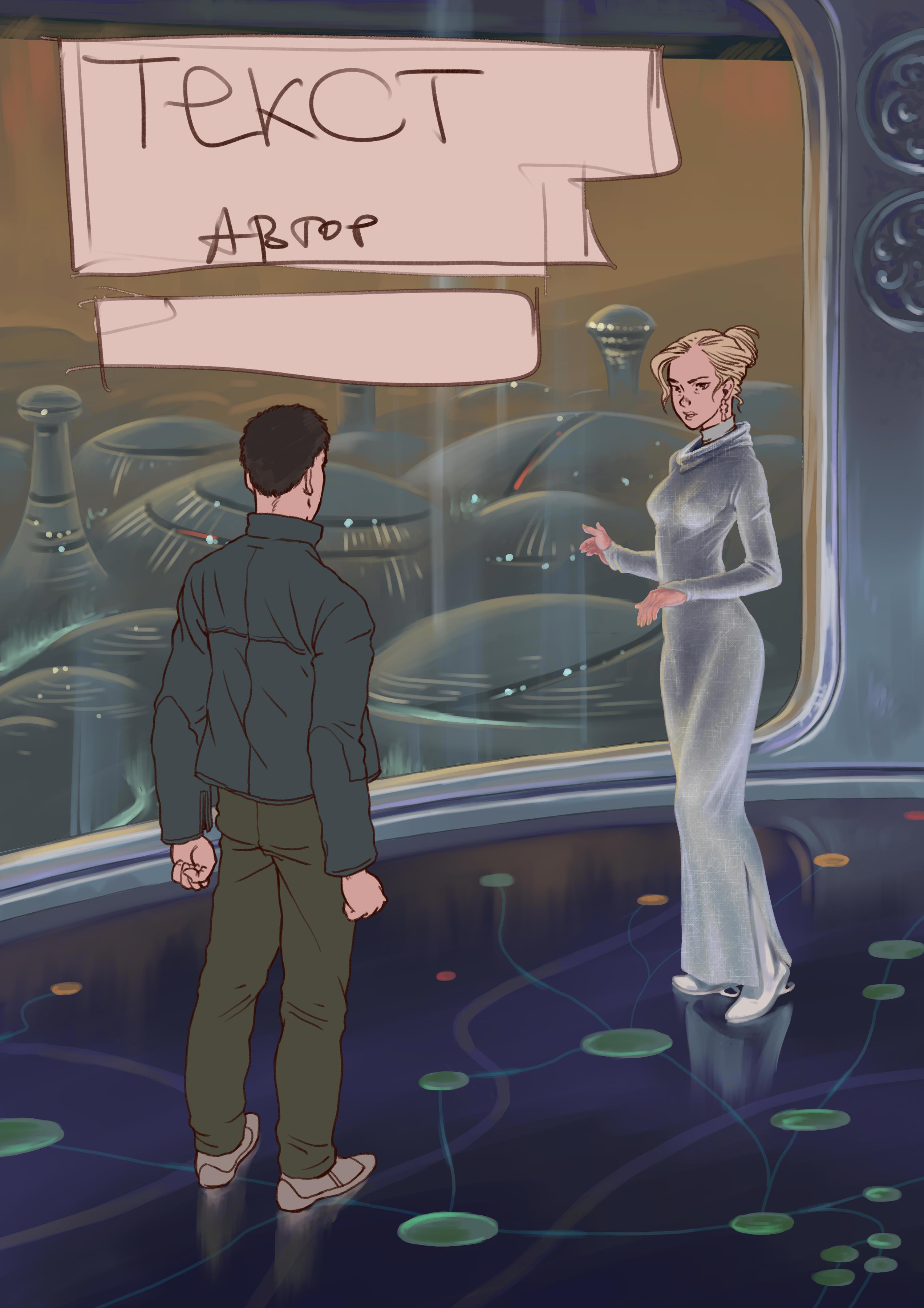 Выясняется, что с текстом у нас немного поплыл баланс композиции. Да и яркость персонажей желательно поднять.