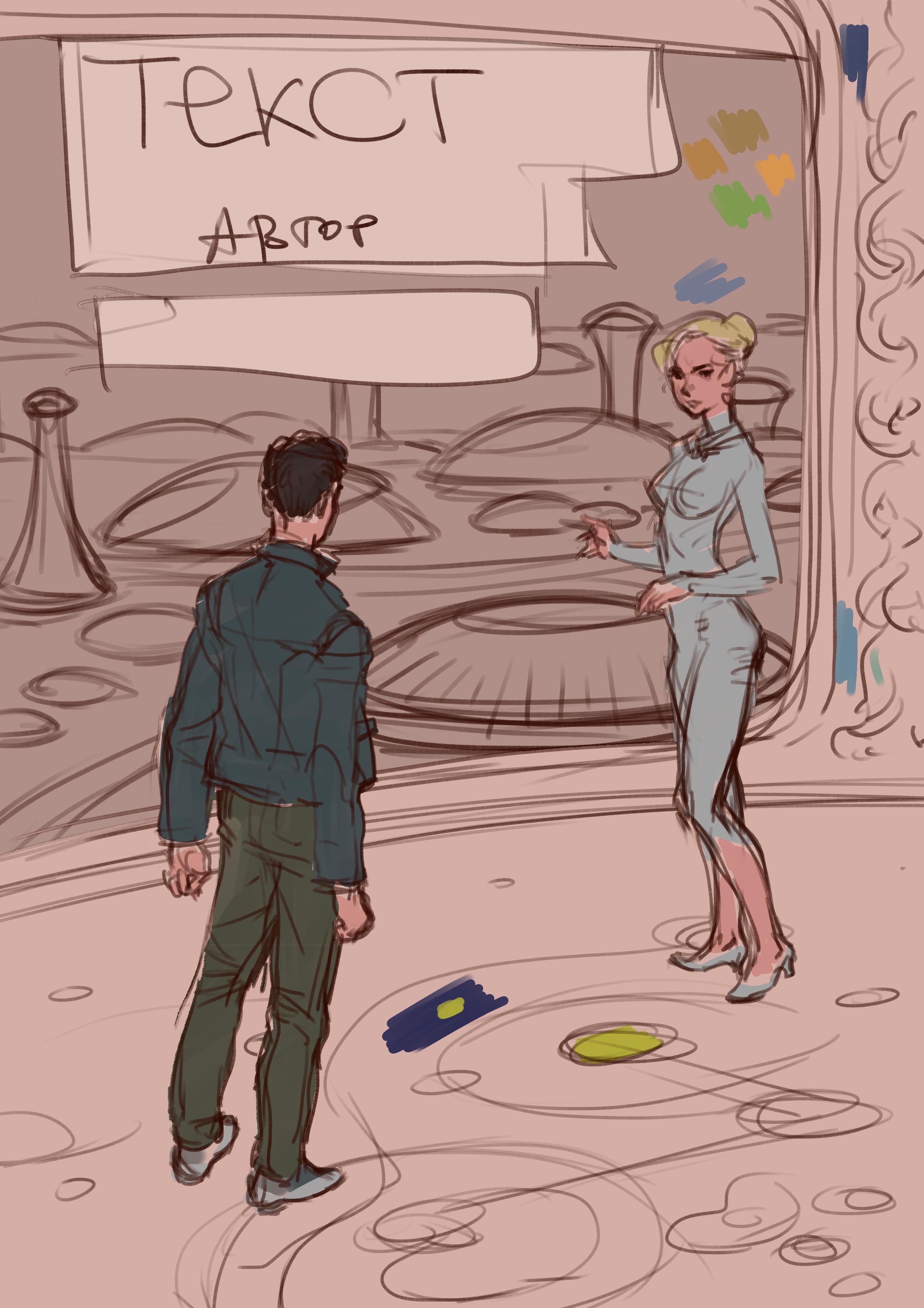 6. Переходим к персонажам (и женский все же главнее - он развернут к нам лицом):