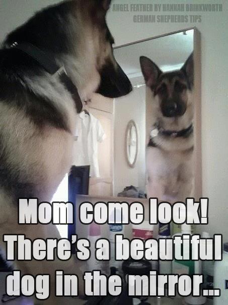 Мам, подойди посмотри, здесь прекрасная собака в зеркале))