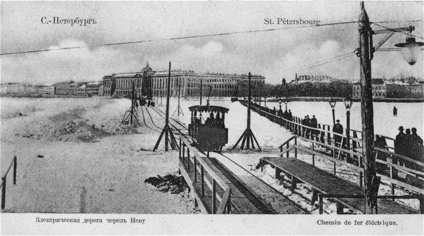 В конце 19 - начале 20 века владельцы конок не пускали на улицы трамваи. Они так заключили договор с городскими властями, что право массовой перевозки по улицам города на ближайшие 20 лет принадлежало только им. Но нашёлся один шустрый предприниматель, который пустил трамвай прямо по льду Невы. Положил на лёд рельсы, вморозил столбы-опоры для проводов - и готово! Он так и назывался - Ледяной трамвай. Действовало несколько маршрутов, просуществовал Ледяной трамвай года 3 или 4, ни разу ни один вагон не провалился. Стоил проезд дёшево, поэтому пользовался популярностью.