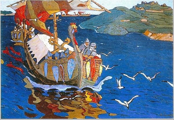 А. Васнецов. Варяжские корабли в Великом Новгороде.