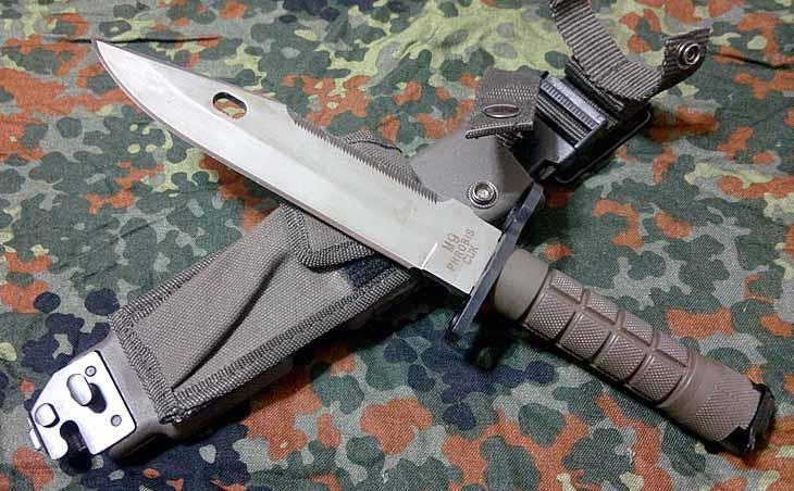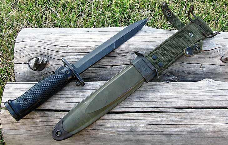 Штурмовая винтовка М16 изначально комплектовалась вот таким штык-ножом М7 (тоже траншейным) :