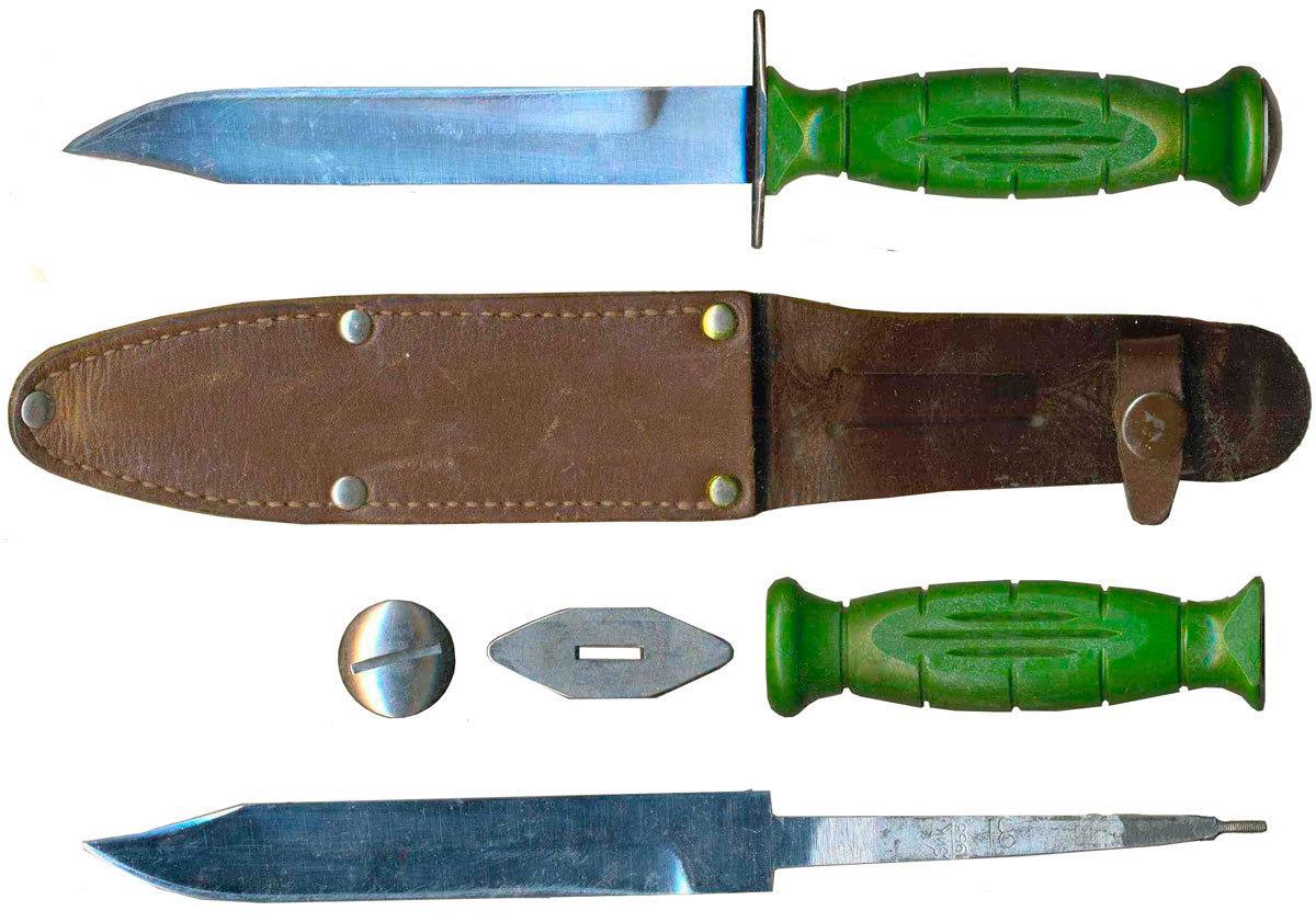 НРС - Нож разведчика Специальный. Снабжен стреляющим однозарядным механизмом под бесшумный боеприпас замкнутого типа СП-3