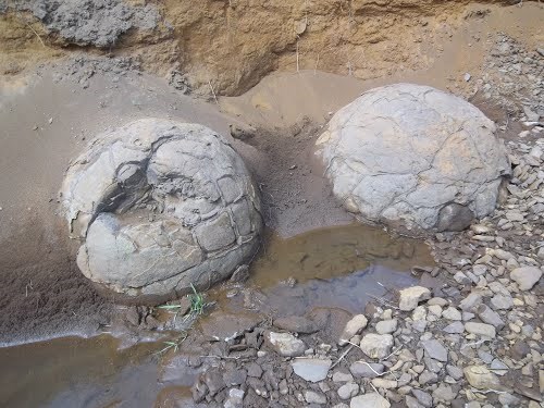Итак. Пару слов о загадочных каменных шарах. Обычно они по одиночке не встречаются. Их находят группами. Во всех странах к ним относятся по разному, но такого, чтобы просто проходили мимо - нигде. В нашей стране каменные шарики скопились в основном на северо западе страны. Карелия, Новая Земля, острова... камни крупные, в основном очень ровненькие, правильные и красивые. Однако в других местах они тоже встречаются. Относительно недавно на них обратили внимание в Волгоградской области. Там камни не такие крупные, как северные в основном. Да и сохранность их похуже - часть из этих шаров полуразрушены. А вот это интересно. Дело в том, что камни изнутри выглядят по-разному и разрушаются тоже не одинаково. С части камней спадает поверхностный слой, словно расколотая яичная скорлупа... так похоже, что часть Волгоградских камней поспешили объявить яйцами динозавров. А что - очень похоже. Наверное часть из них действительно являлись таковыми, но скорее всего не все. Так и осталось непонятным яйца это были или нет - шум постепенно просто сошёл на нет.