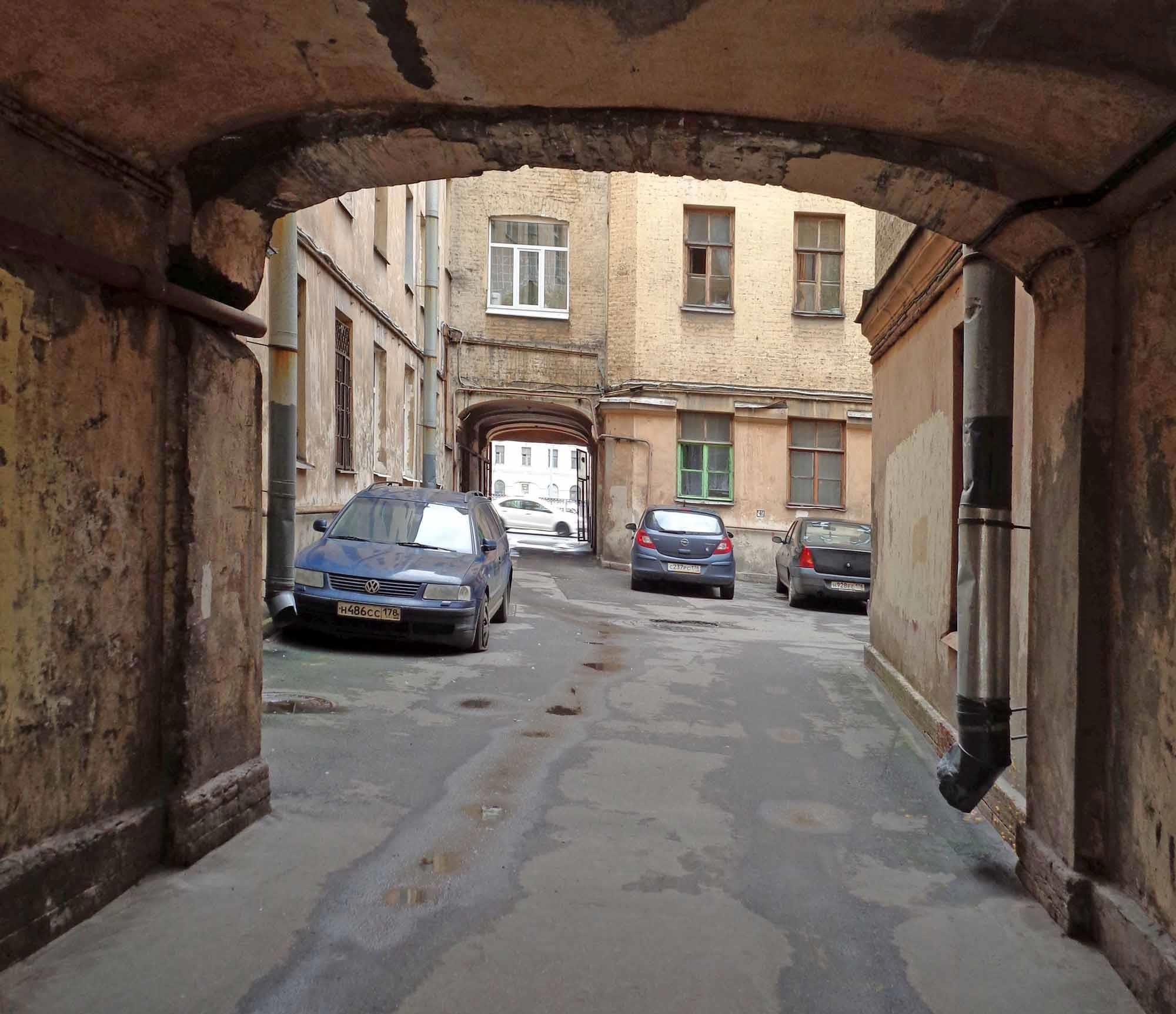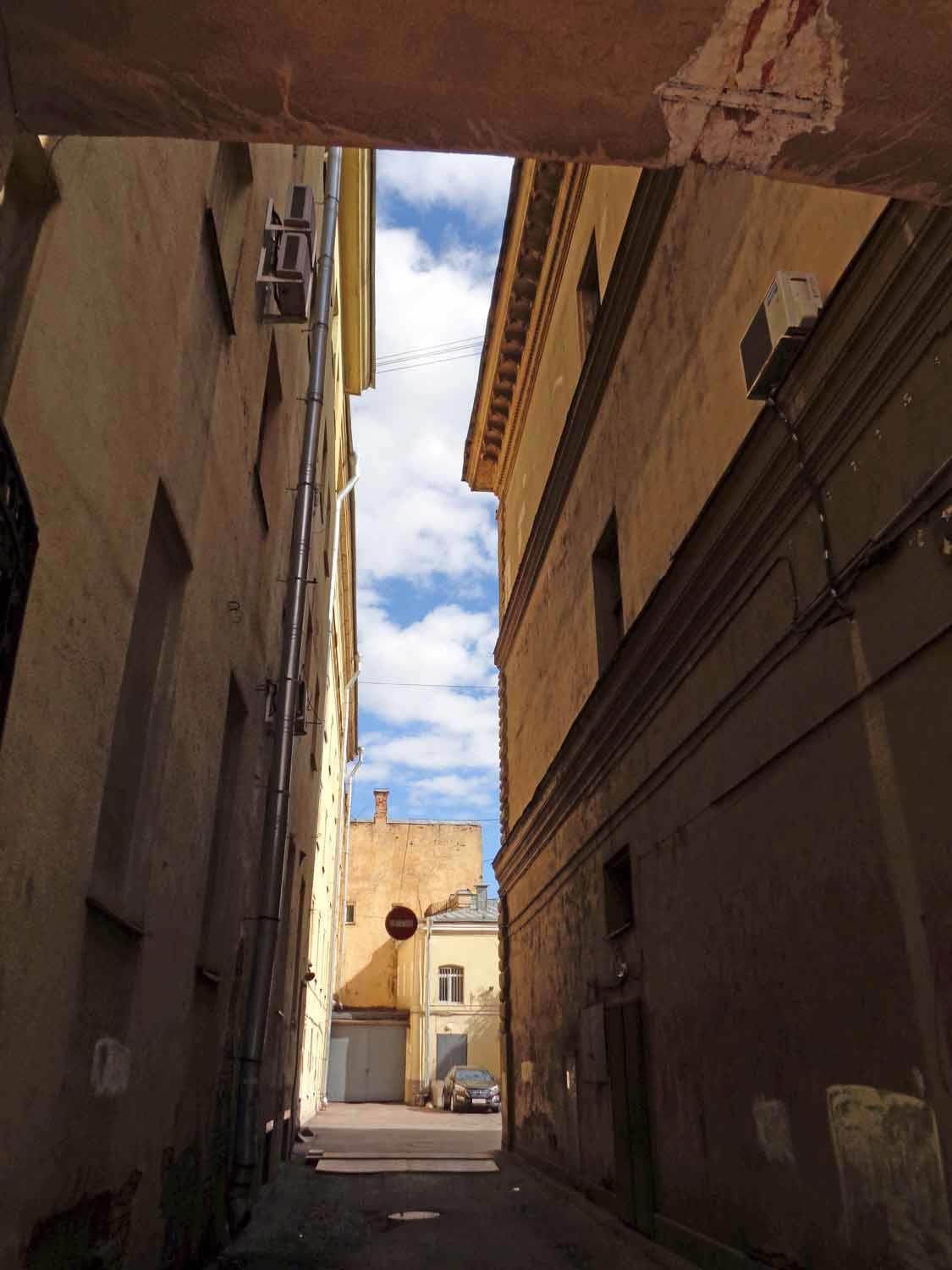 Идя по Старо-Петергофскому, мы нашли ещё одну открытую подворотню и пошли через неё: