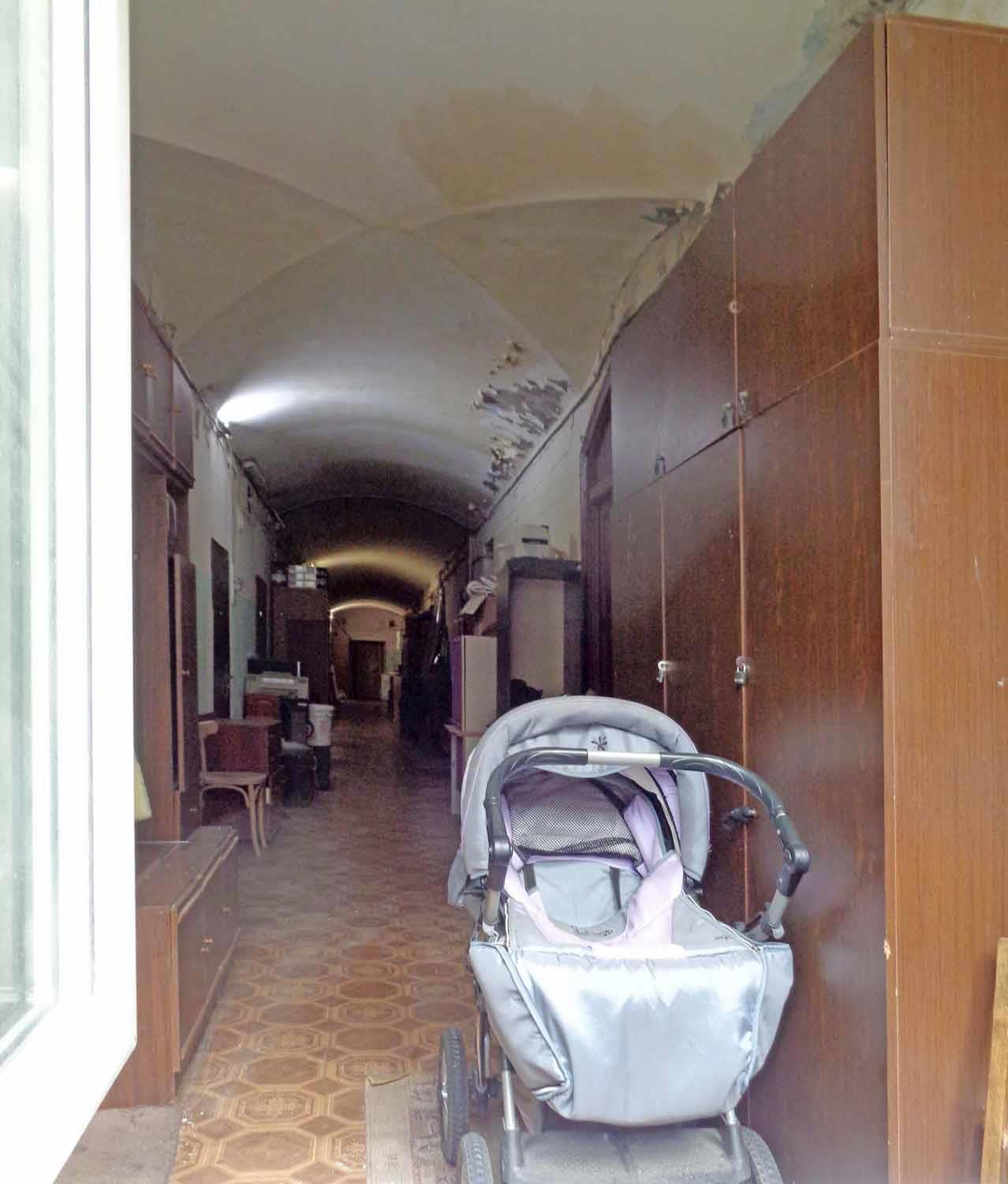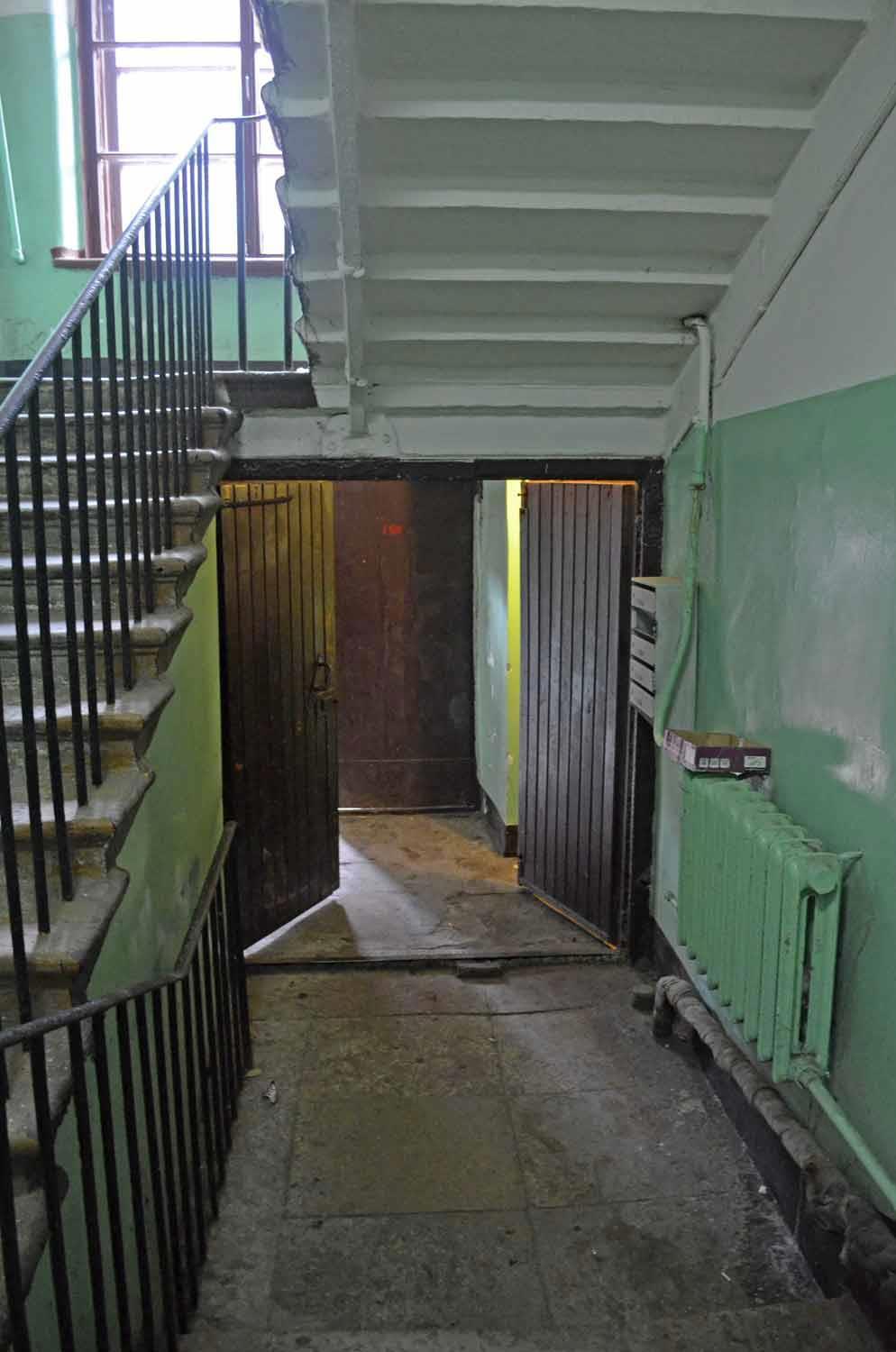Жилой коридор, в который на очередном этаже выходят двери комнат: