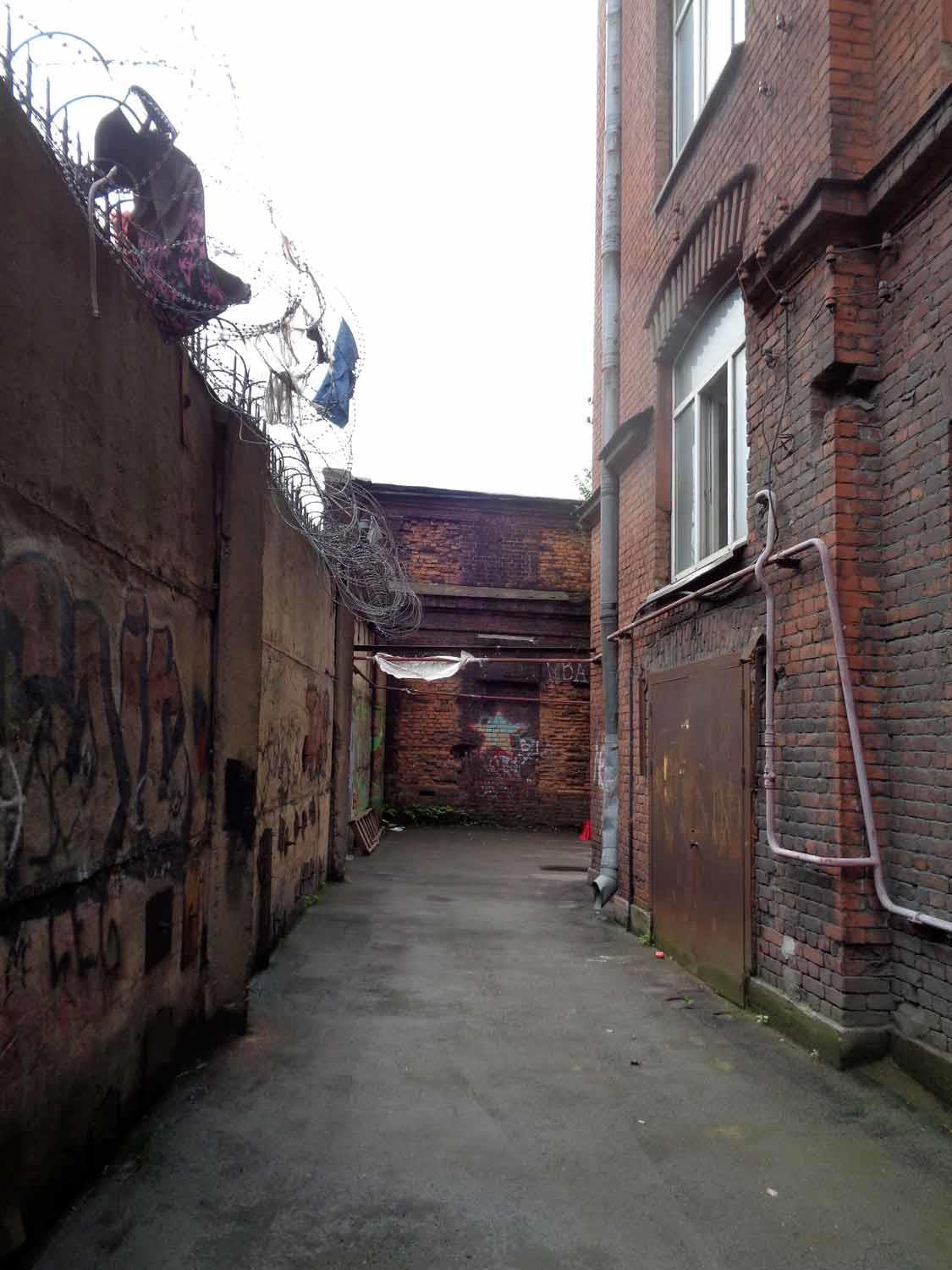 Мы предприняли небольшую самодеятельную экскурсию во двор старой общаги Красного треугольника. Начали со СТаро-Петергофского, пройдя вот по такому экзотическому проходу: