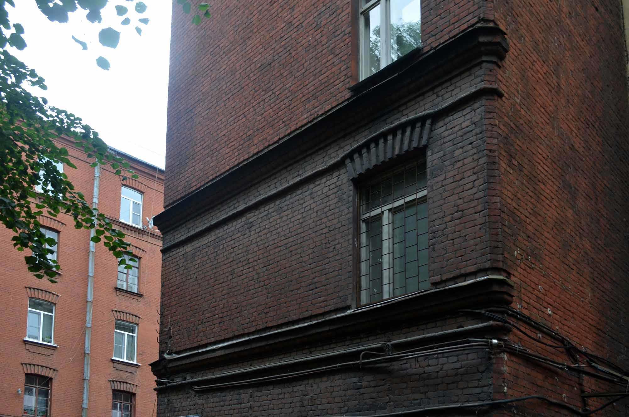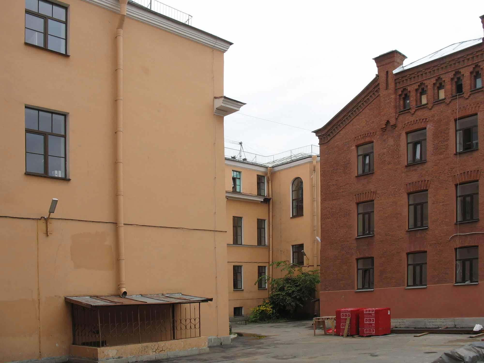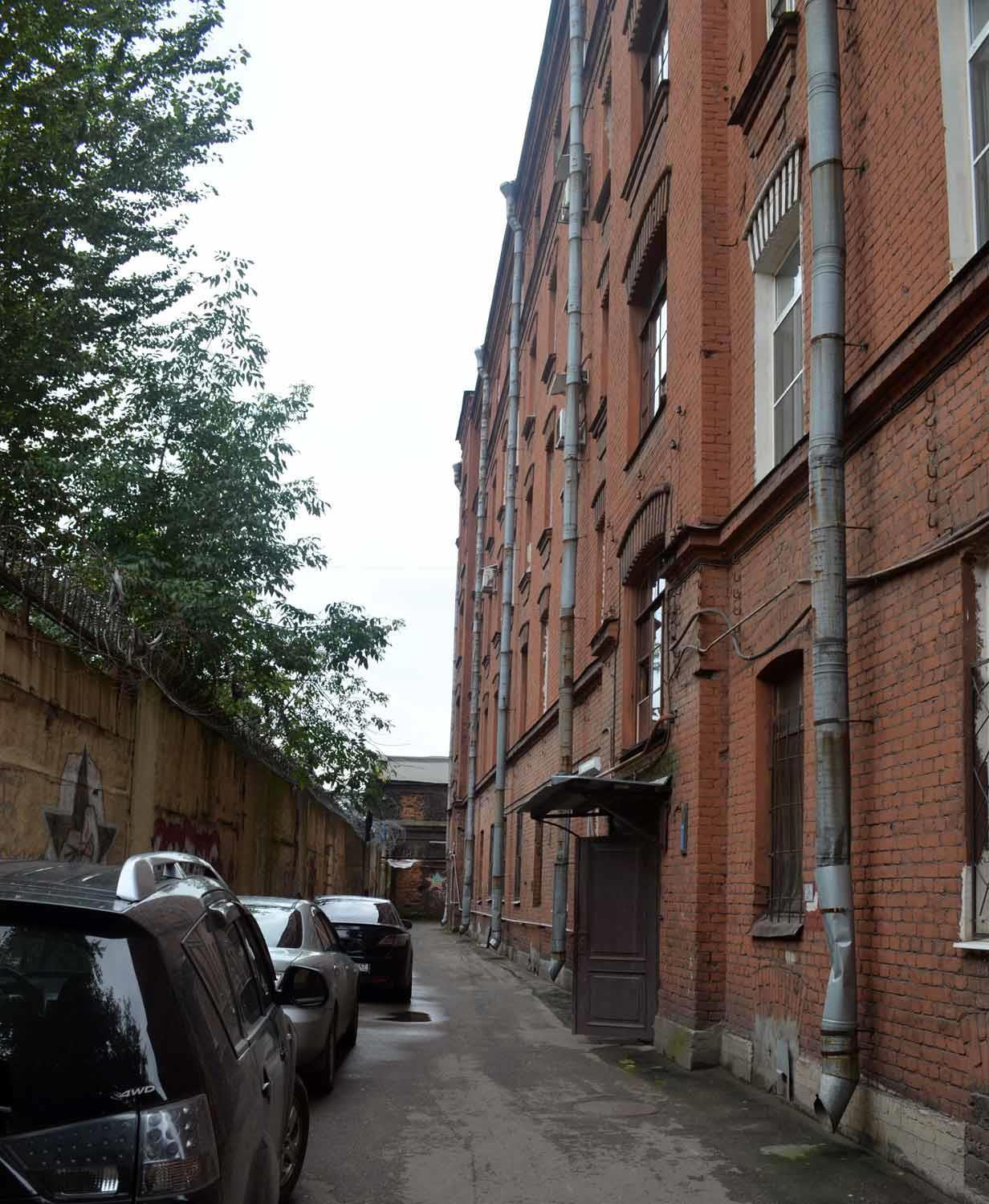 Здесь несколько соединённых между собой дворов и в основном жилые дома. Работники Красного Треугольника жили тут с той поры, как появилась фабрика:
